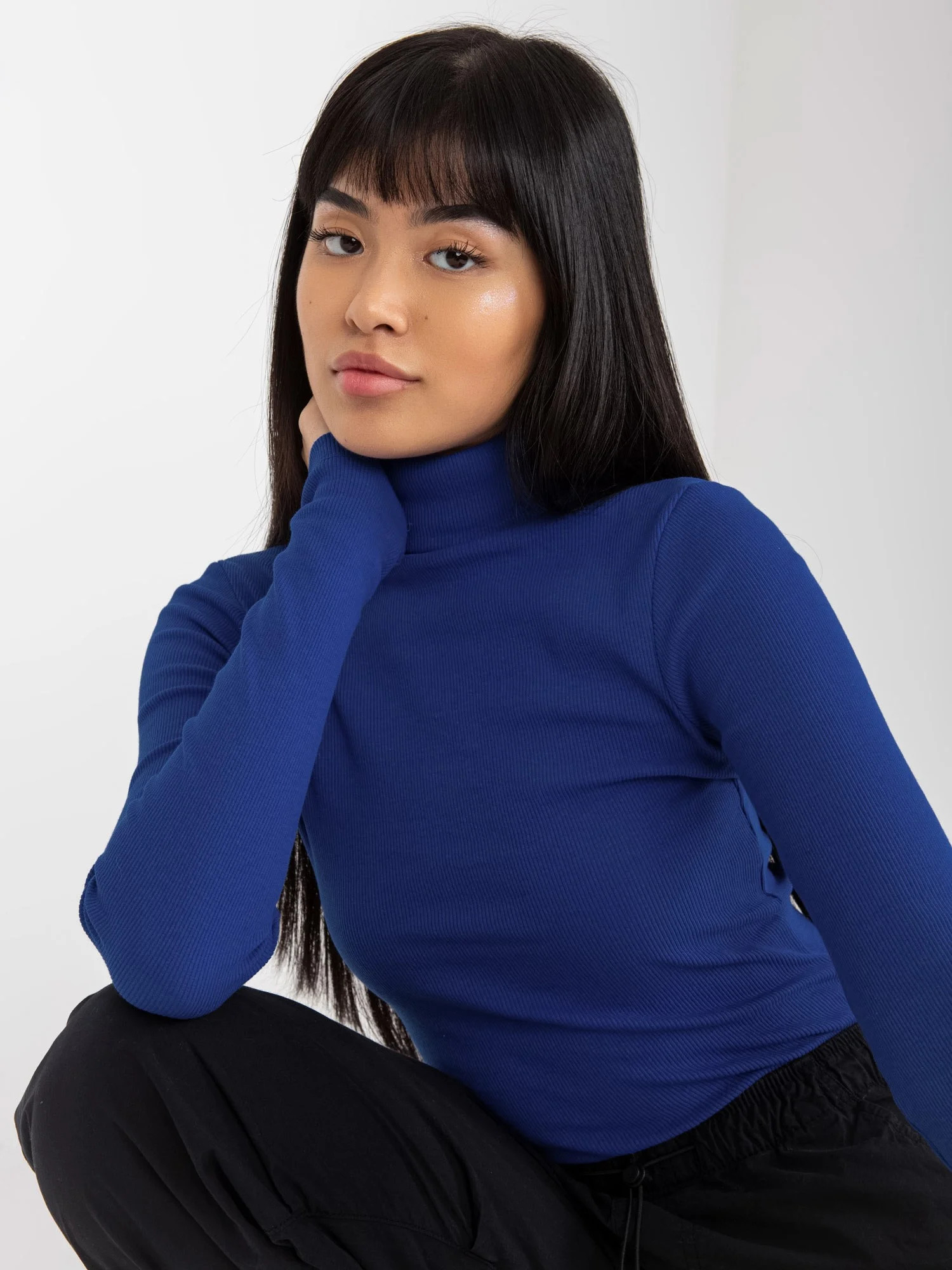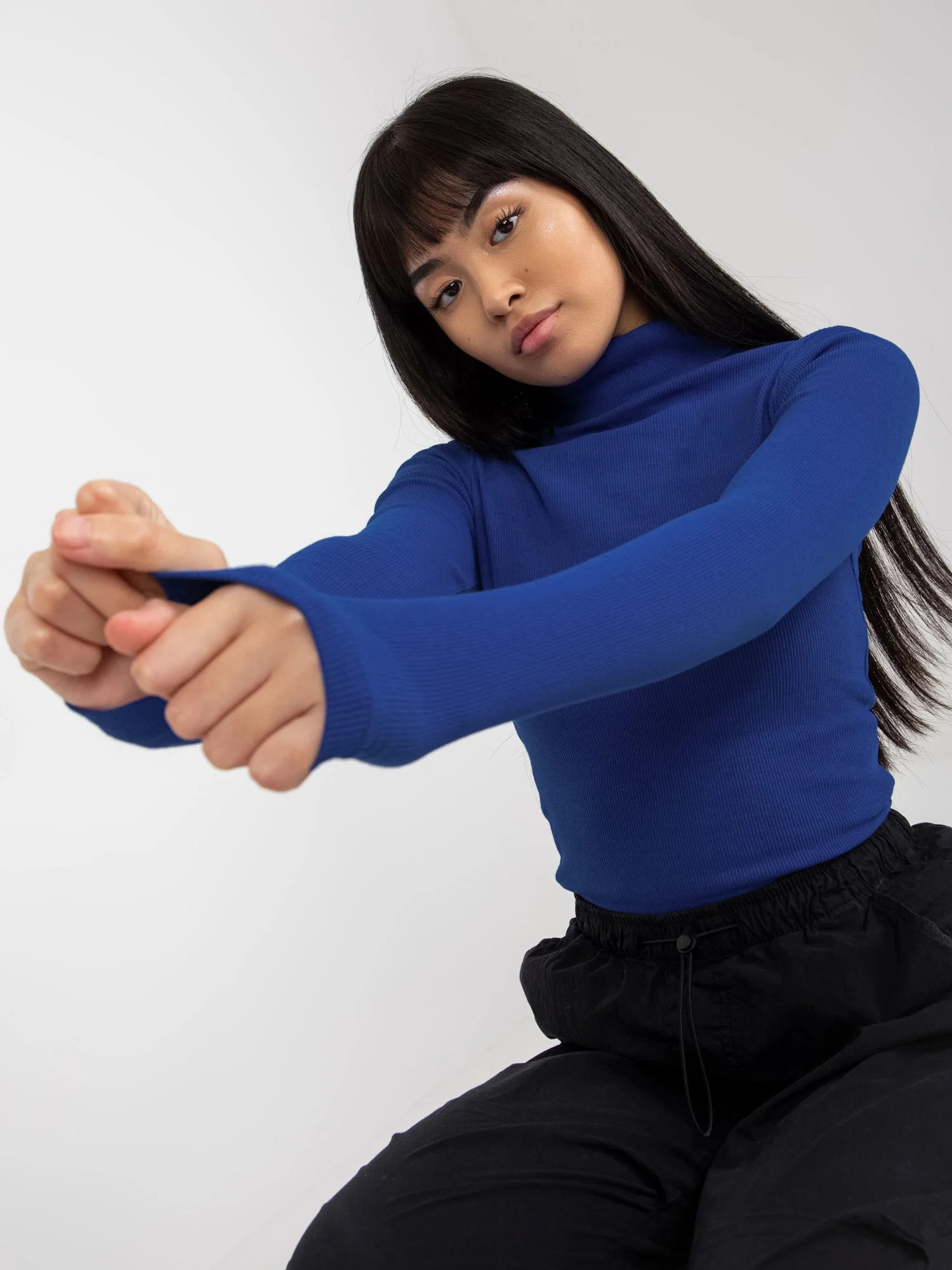Kobaltová pruhovaná halenka s rolákem od Elisee RUE PARIS .
