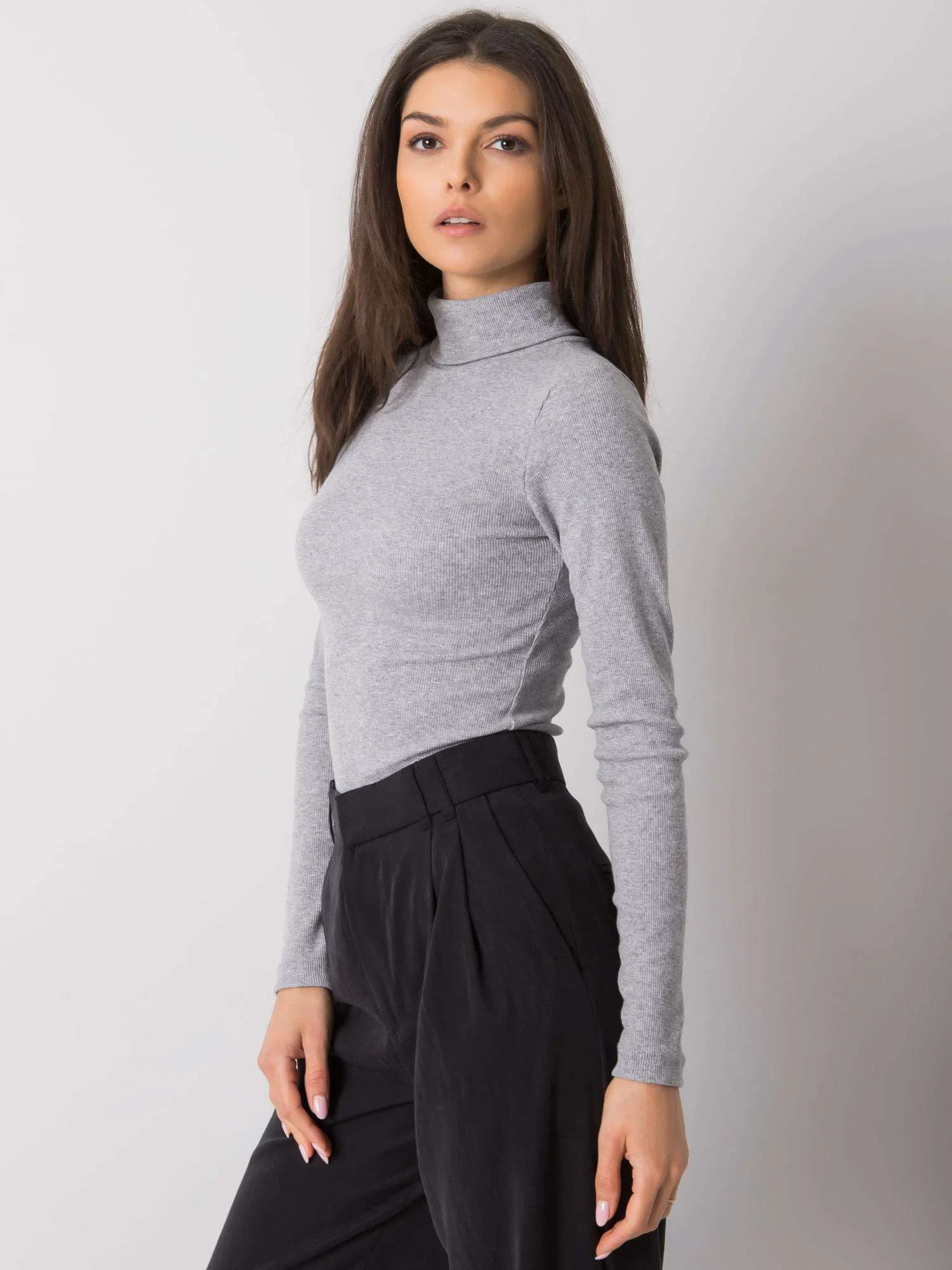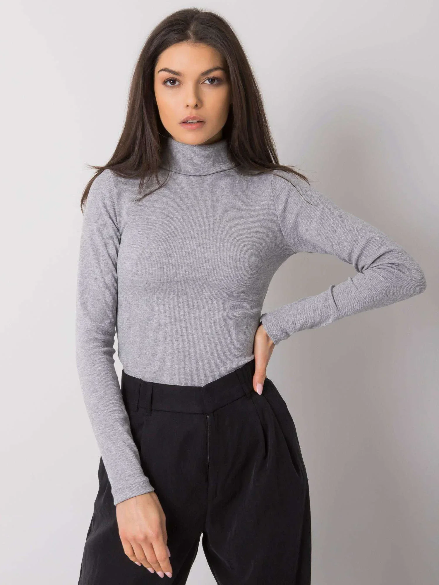 RUE PARIS Šedý melanžový žebrovaný rolák pro ženy.