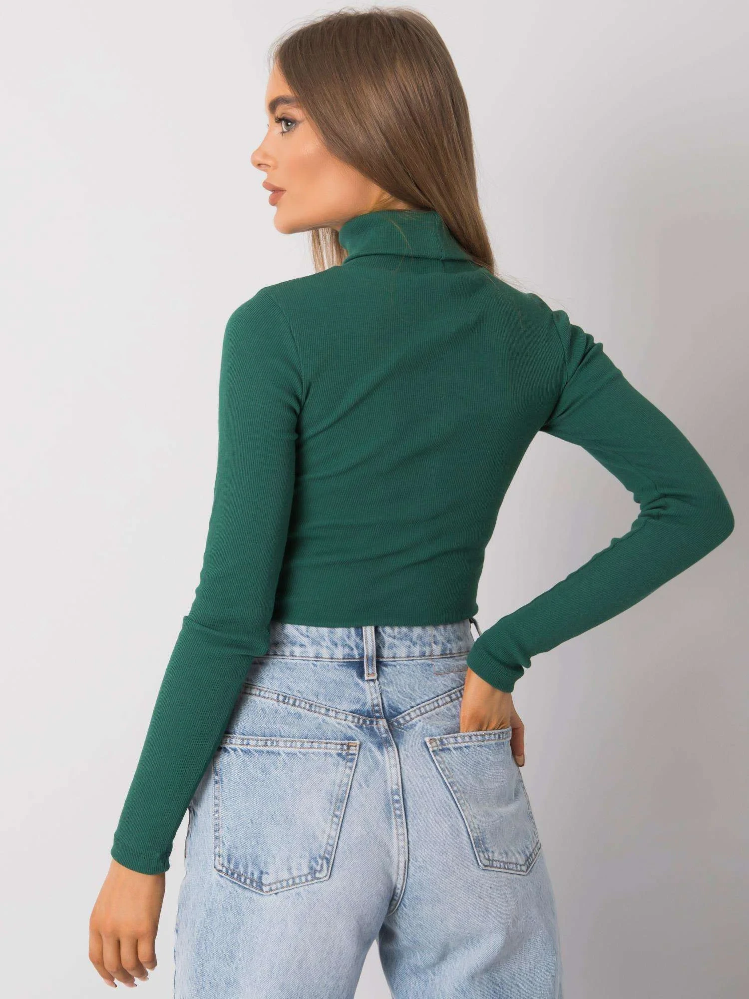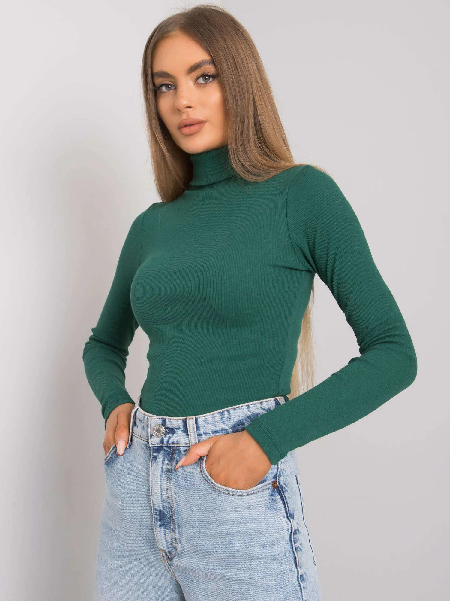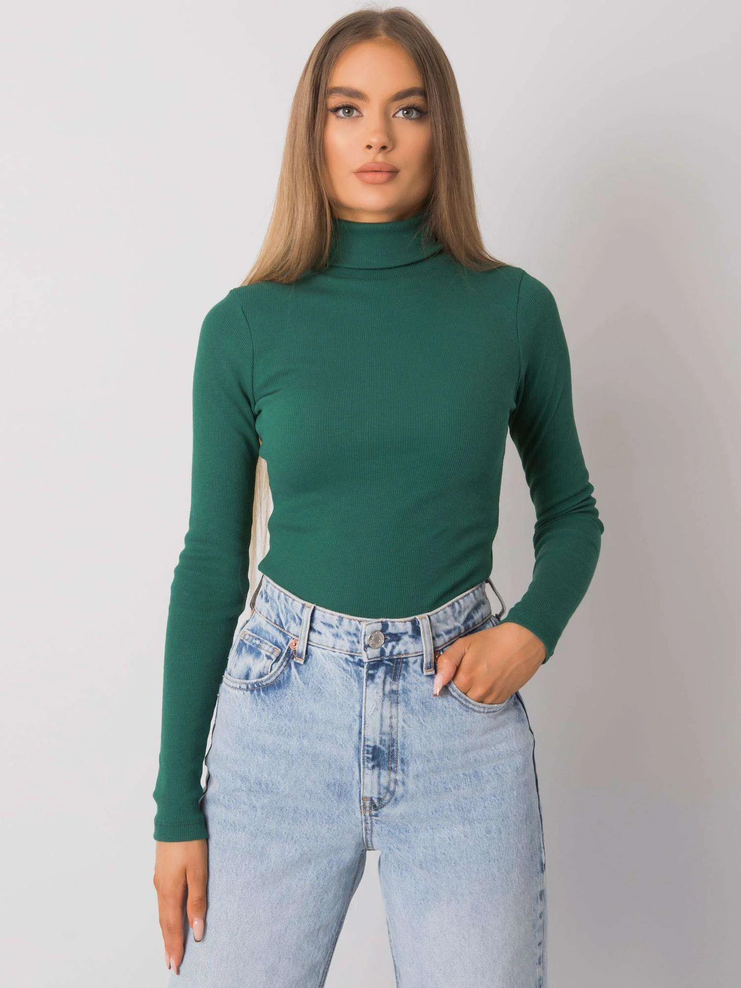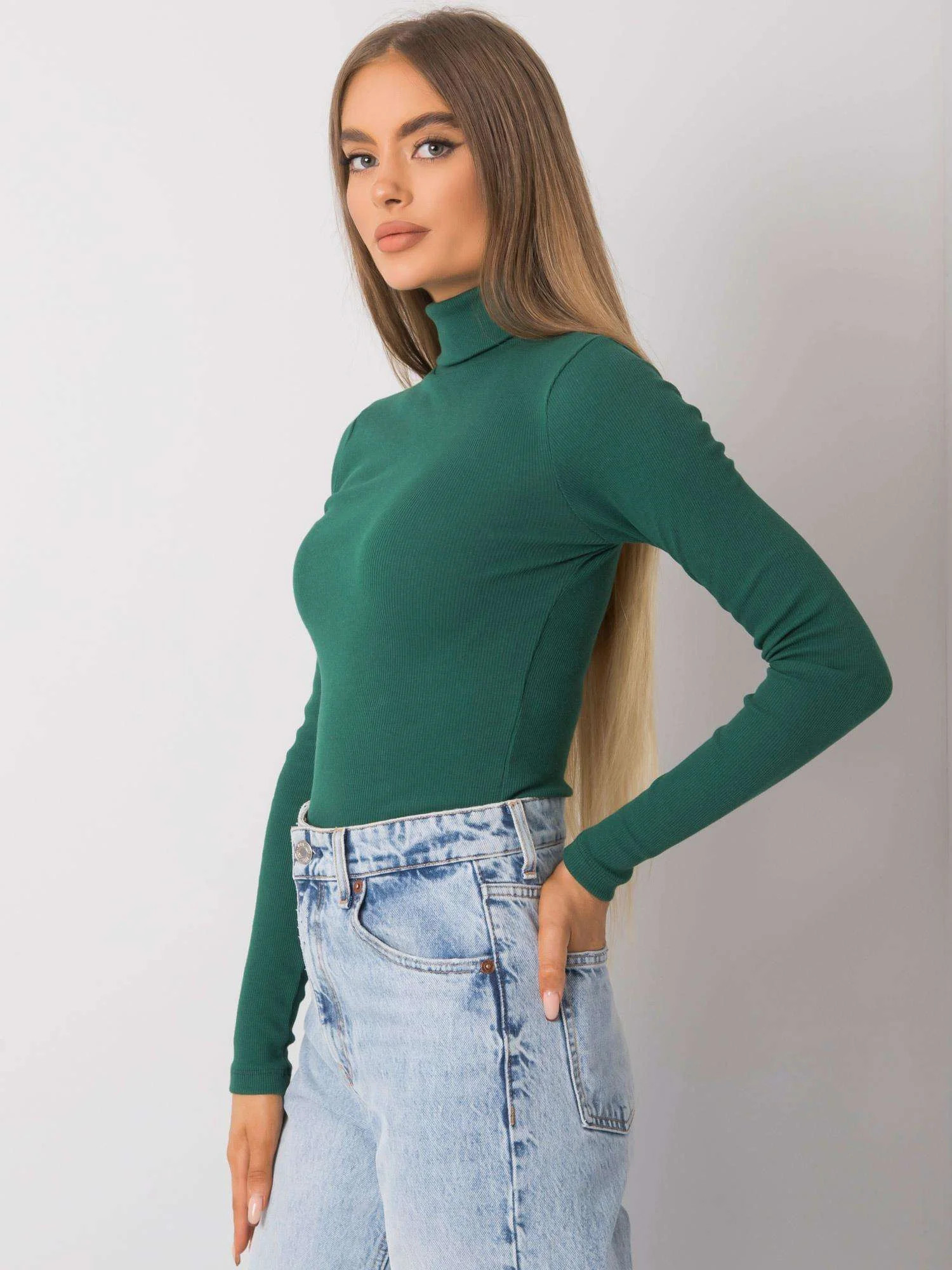 RUE PARIS Tmavě zelený žebrovaný rolák pro ženy.