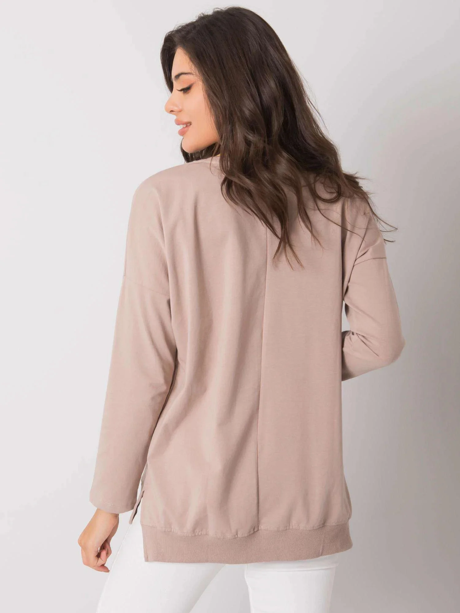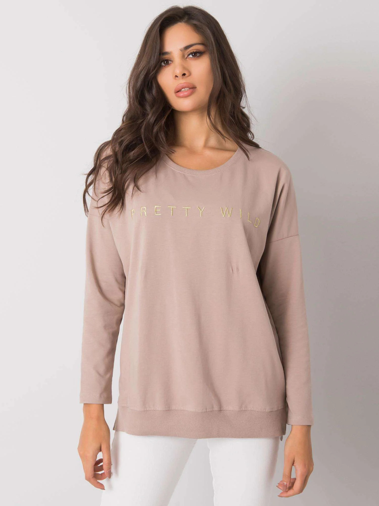 RUE PARIS Tmavě béžová halenka s nápisy.