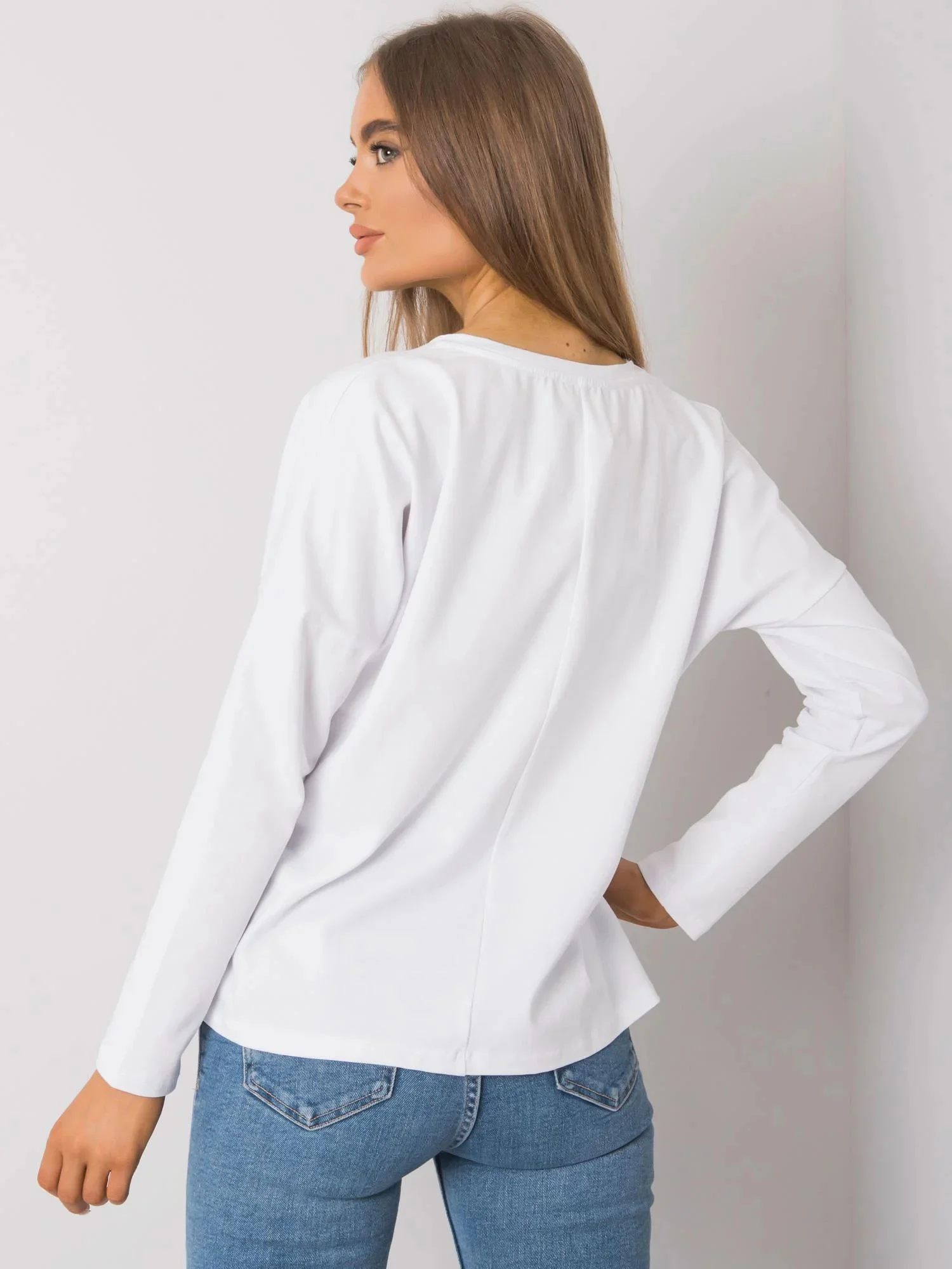 RUE PARIS Dámské bílé bavlněné tričko s dlouhým rukávem.