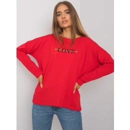 RUE PARIS Červené bavlněné dámské tričko s dlouhým rukávem.