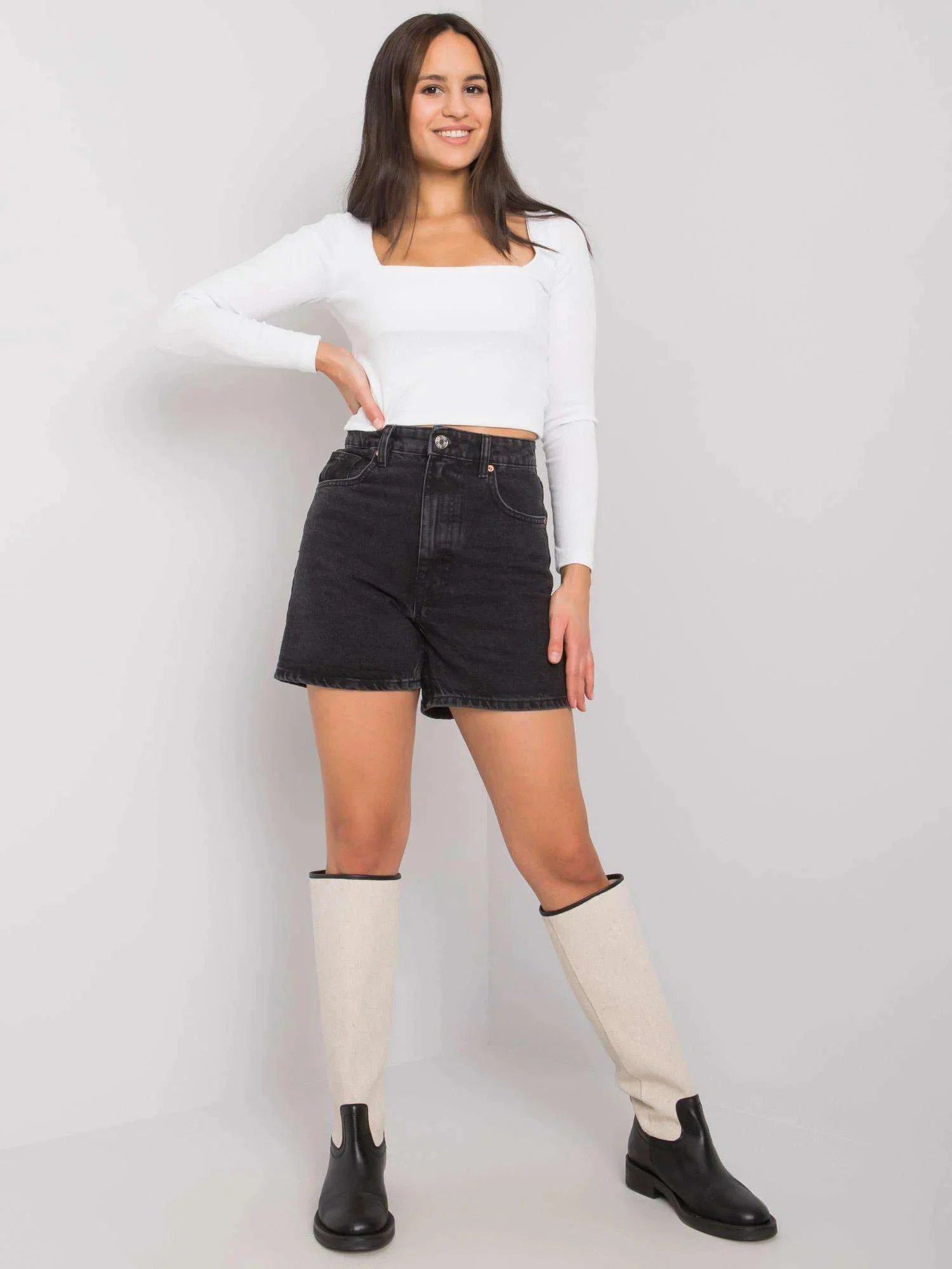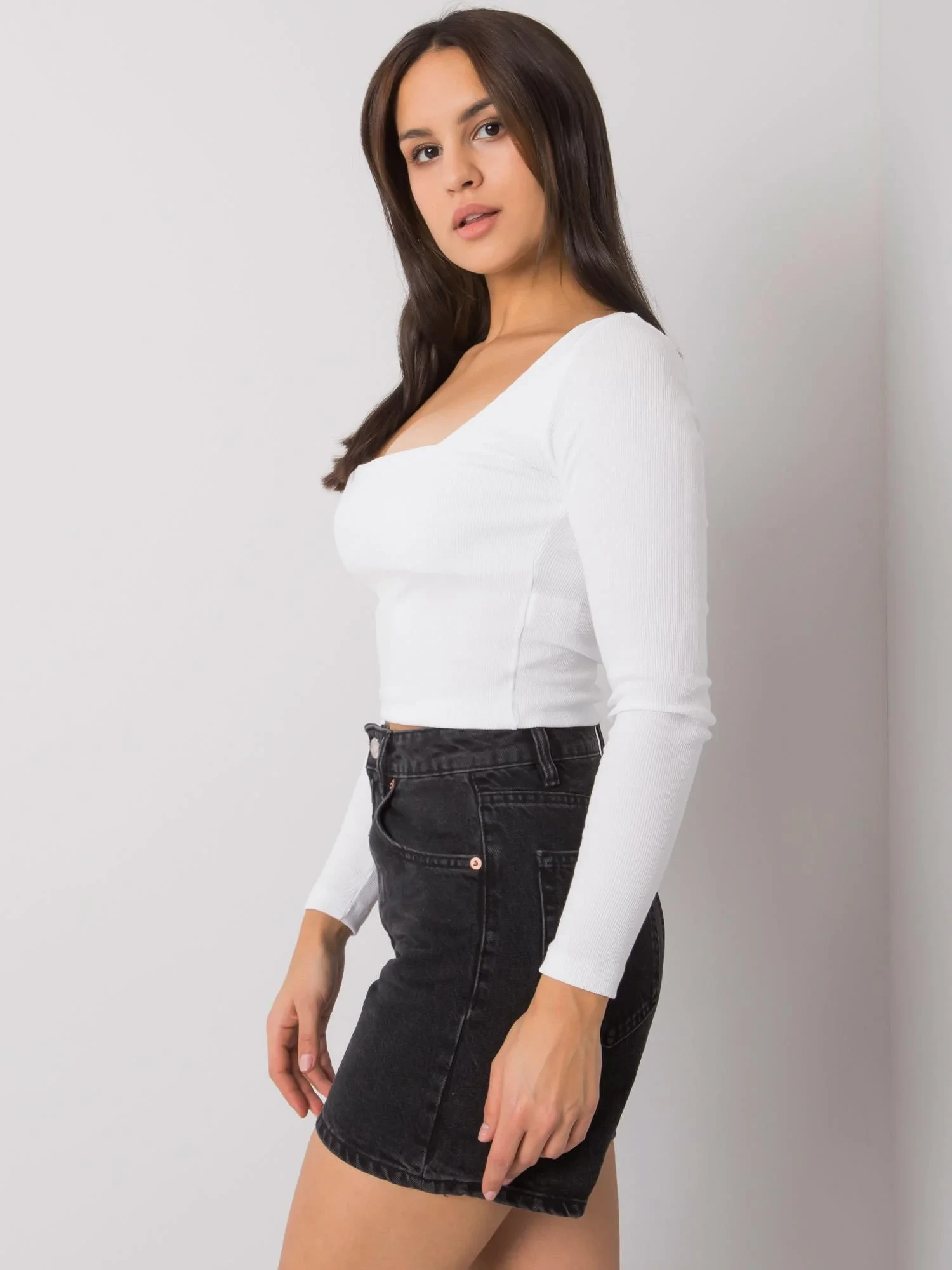 RUE PARIS Bílá krátká žebrovaná halenka.