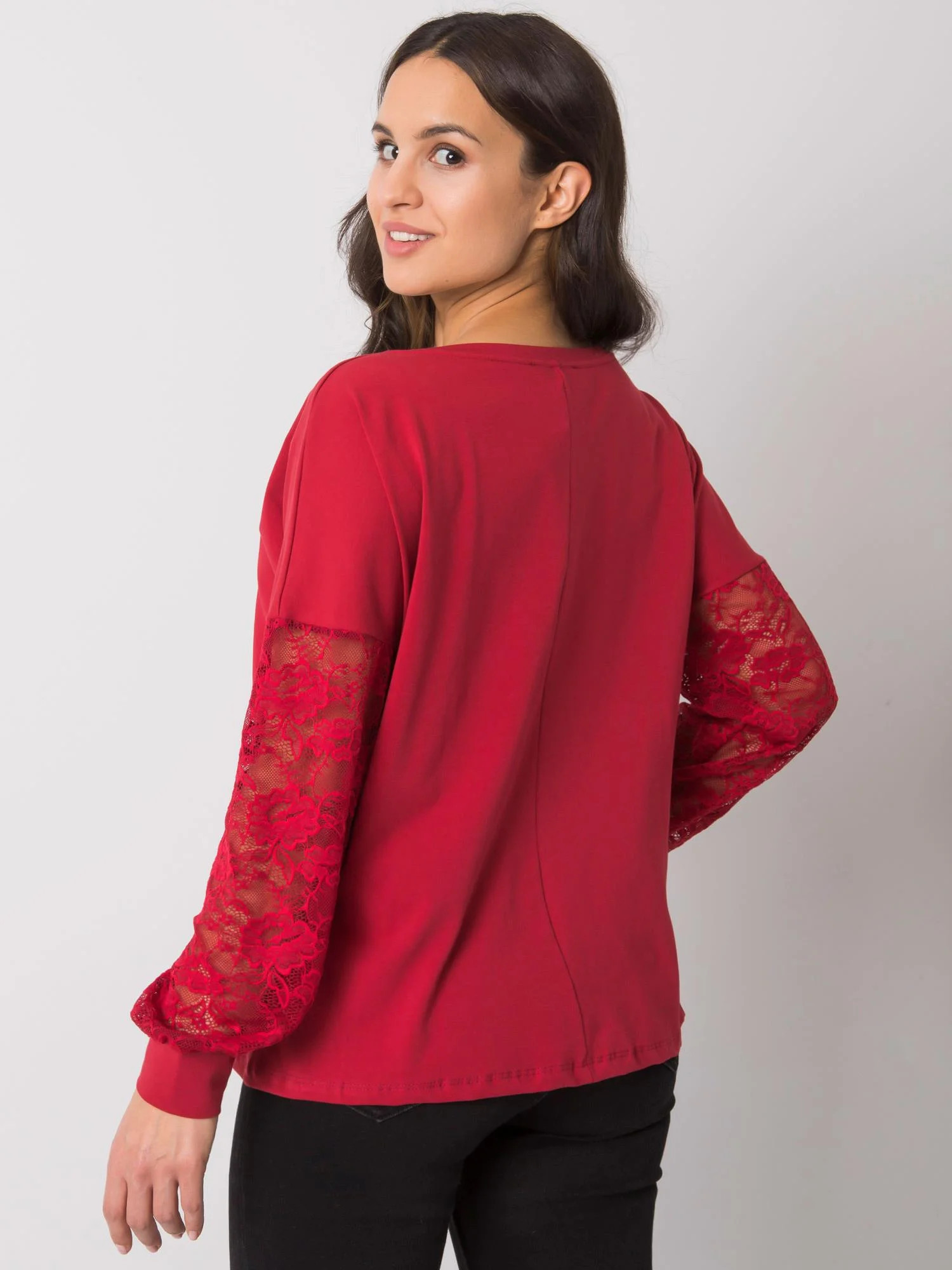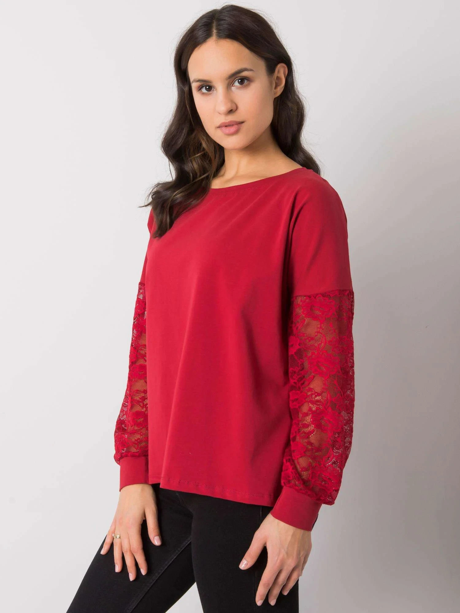 RUE PARIS Bordó halenka s ozdobnými rukávy.