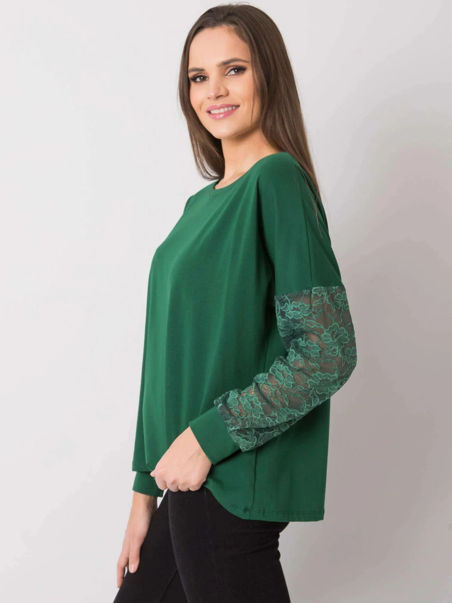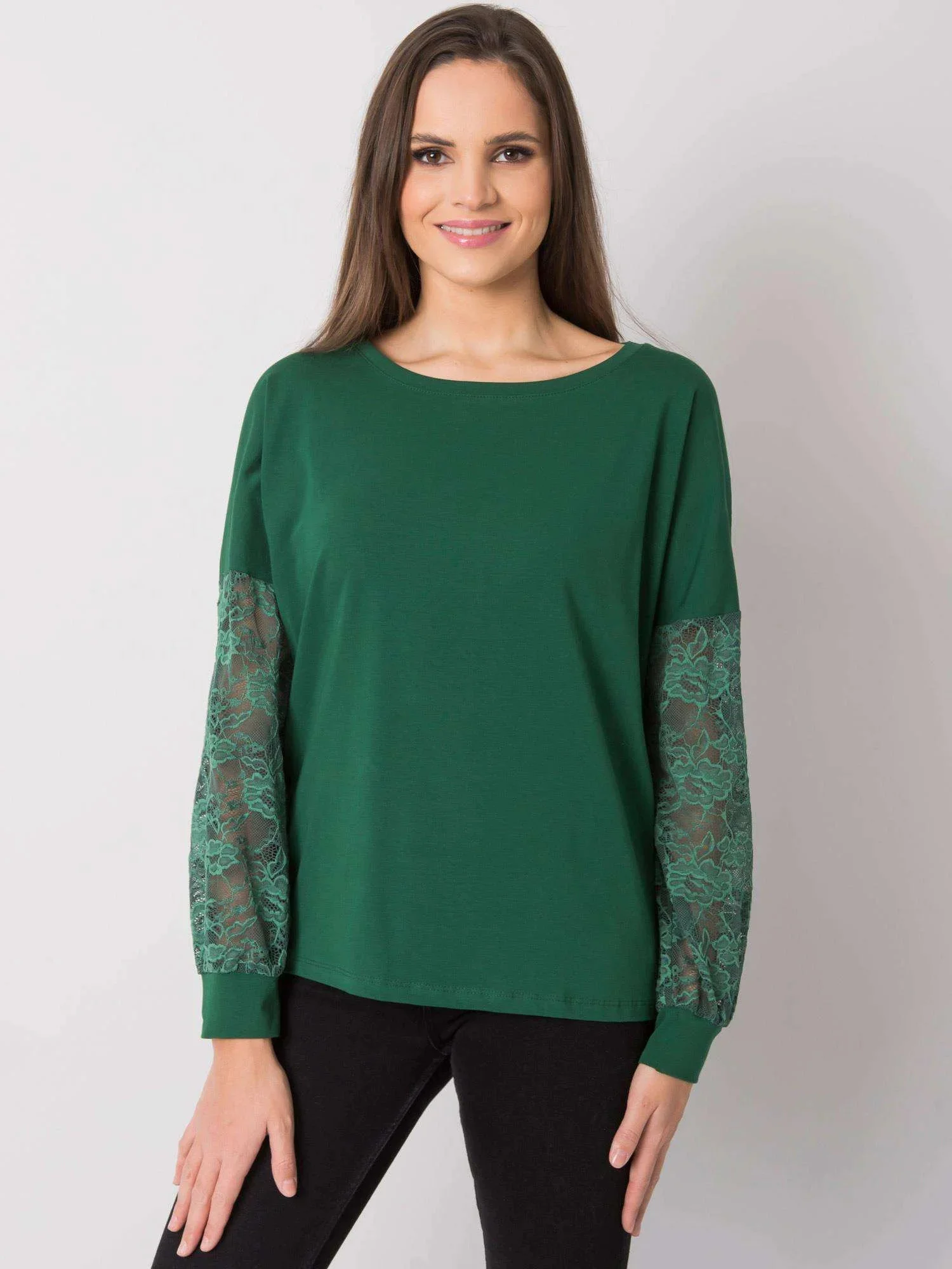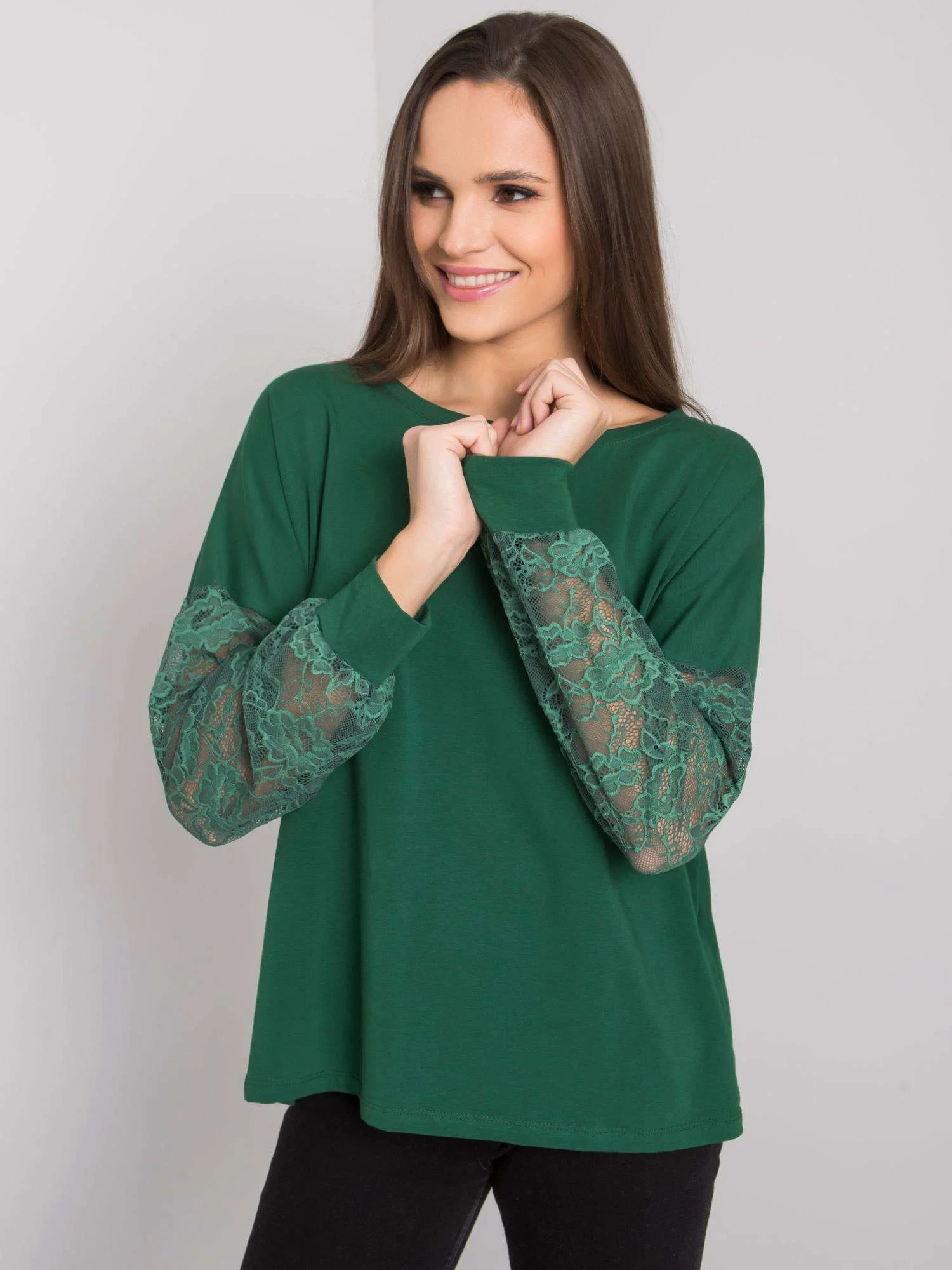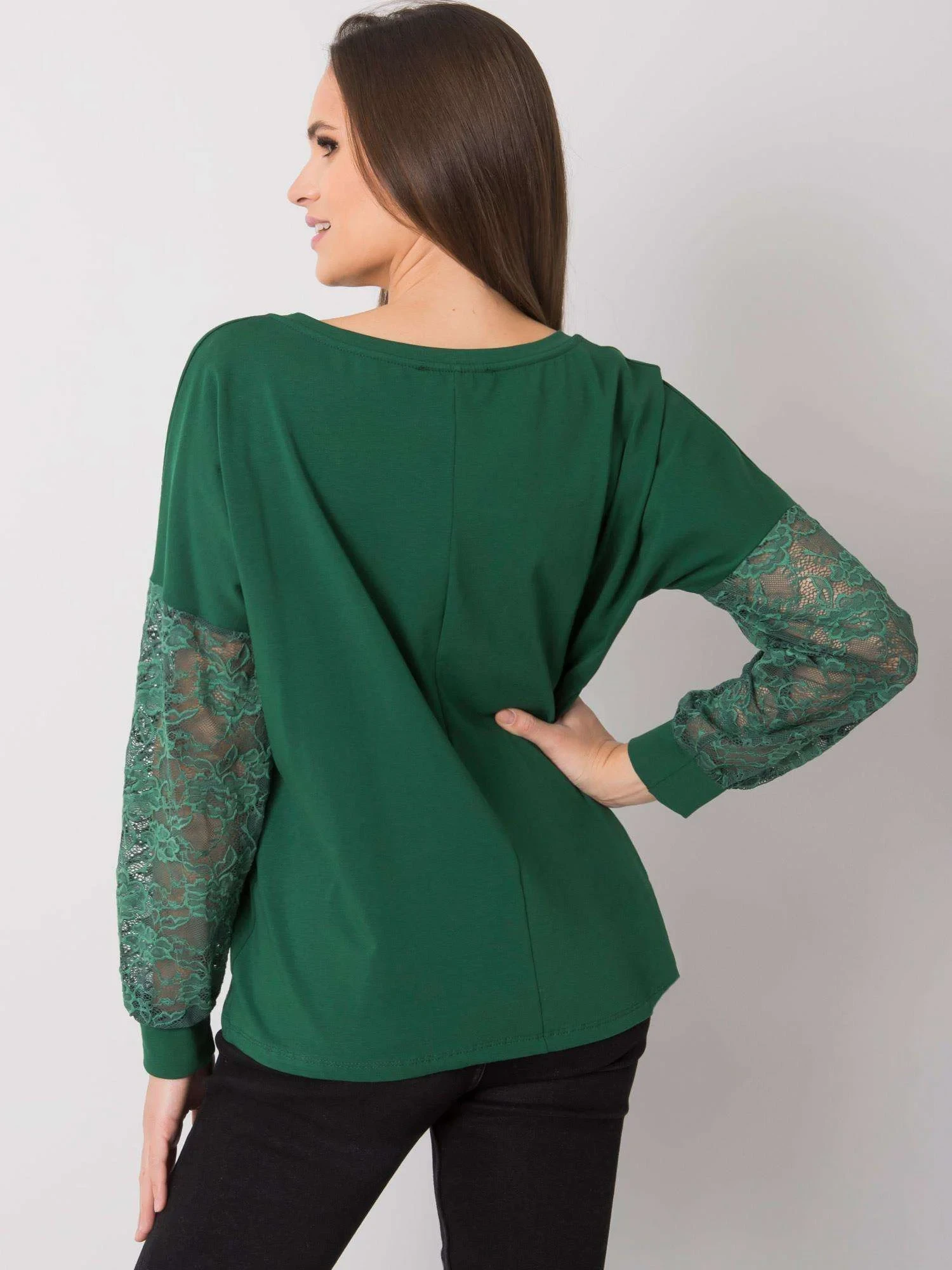 RUE PARIS Tmavě zelená halenka s ozdobnými rukávy.