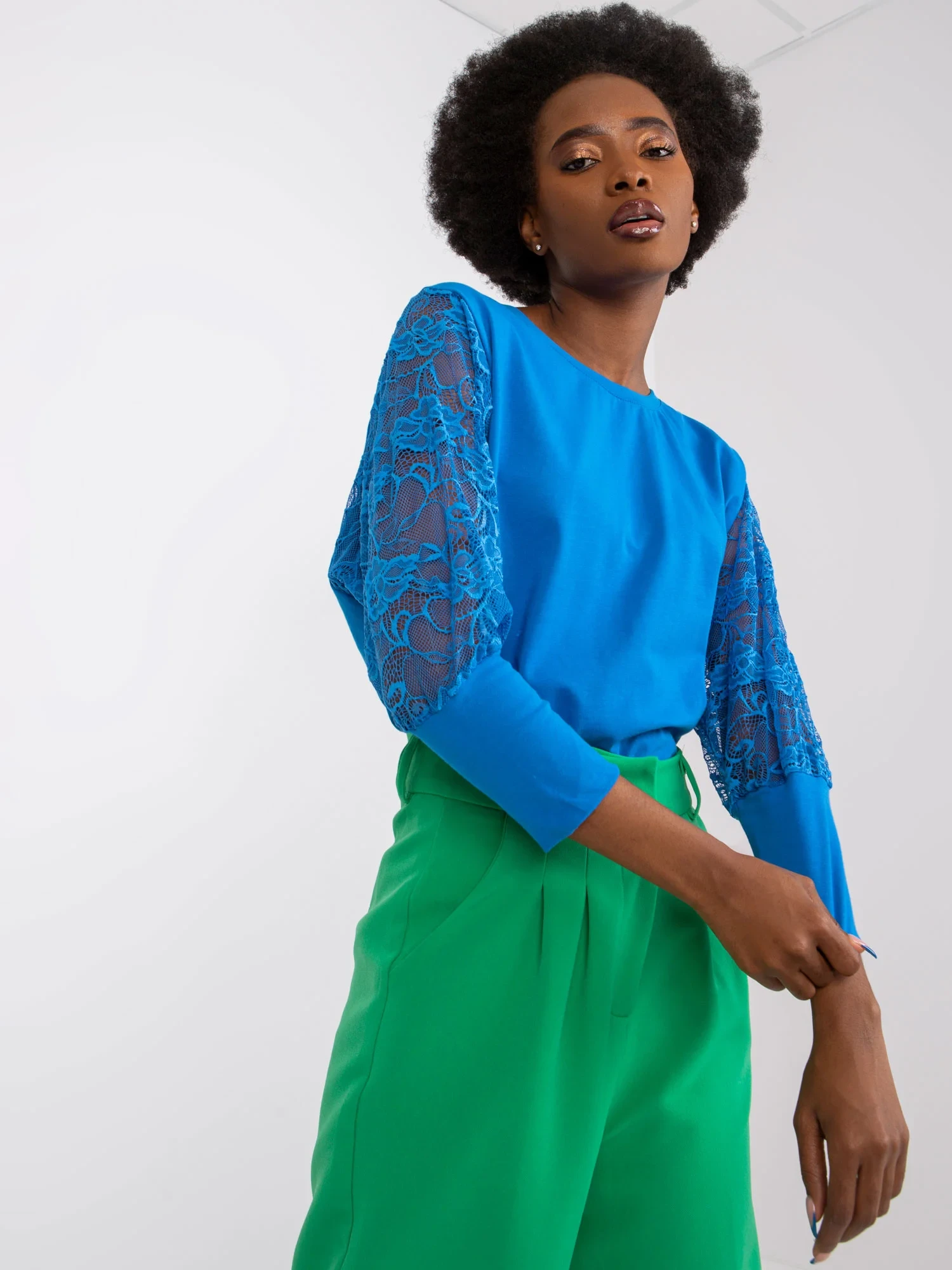 Modelka má na sobě velikost S. Rozměry modelky: výška 162 cm, poprsí 80 cm, pas 63 cm, boky 80 cm.