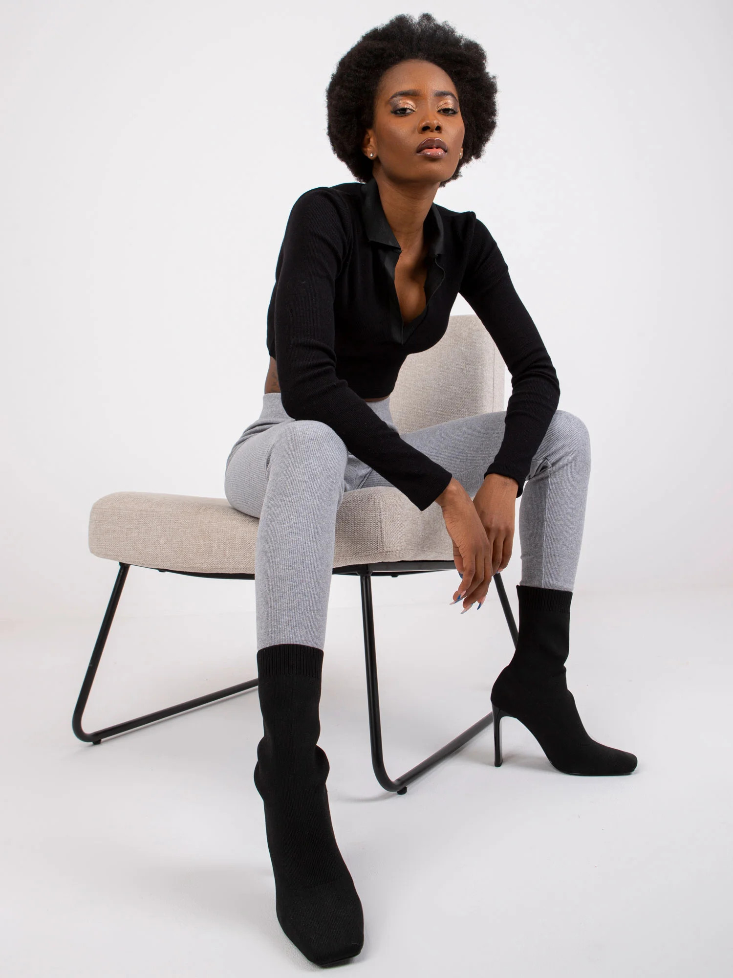Modelka má na sobě velikost S. Rozměry modelky: výška 162 cm, poprsí 80 cm, pas 63 cm, boky 80 cm.