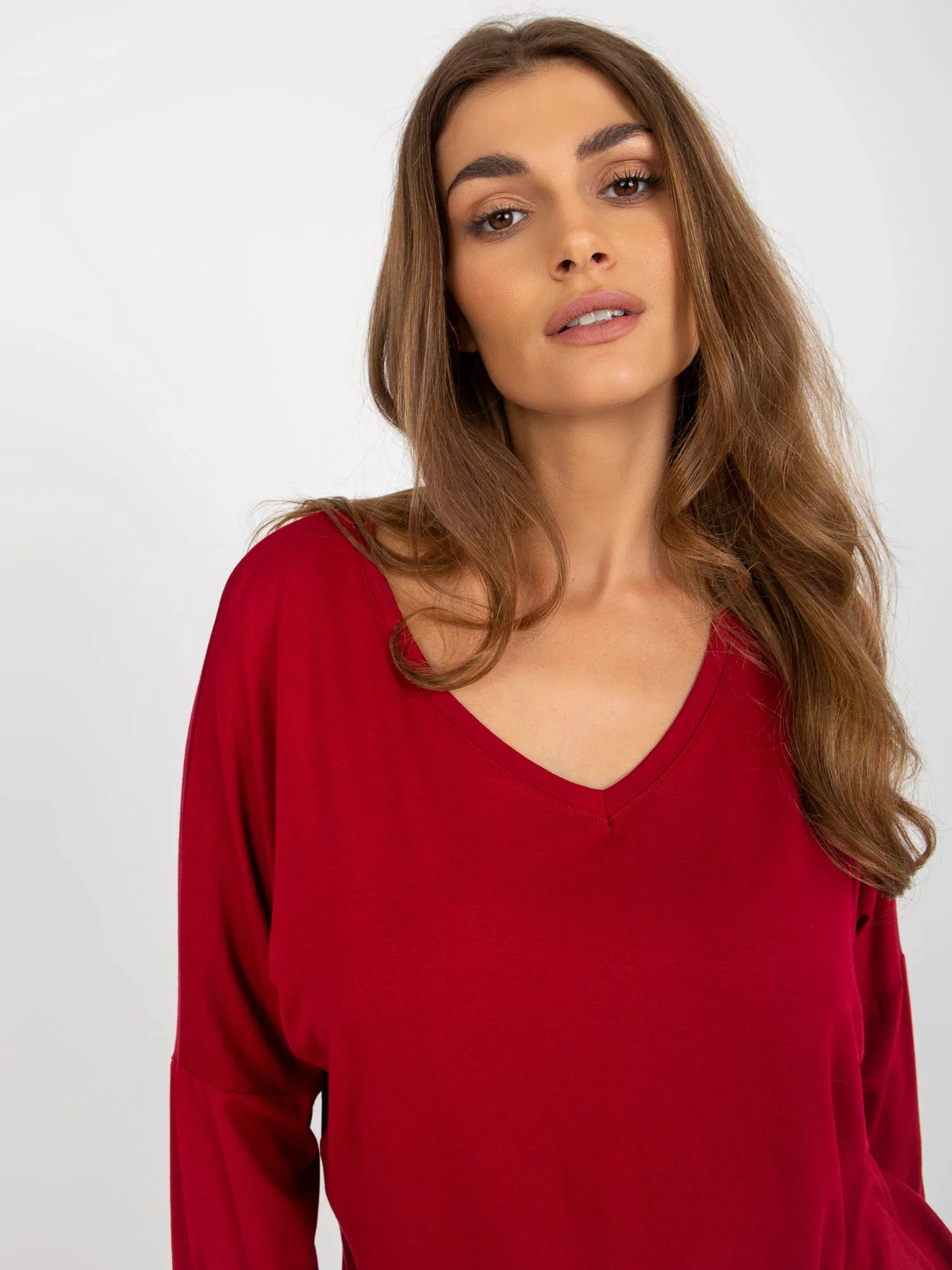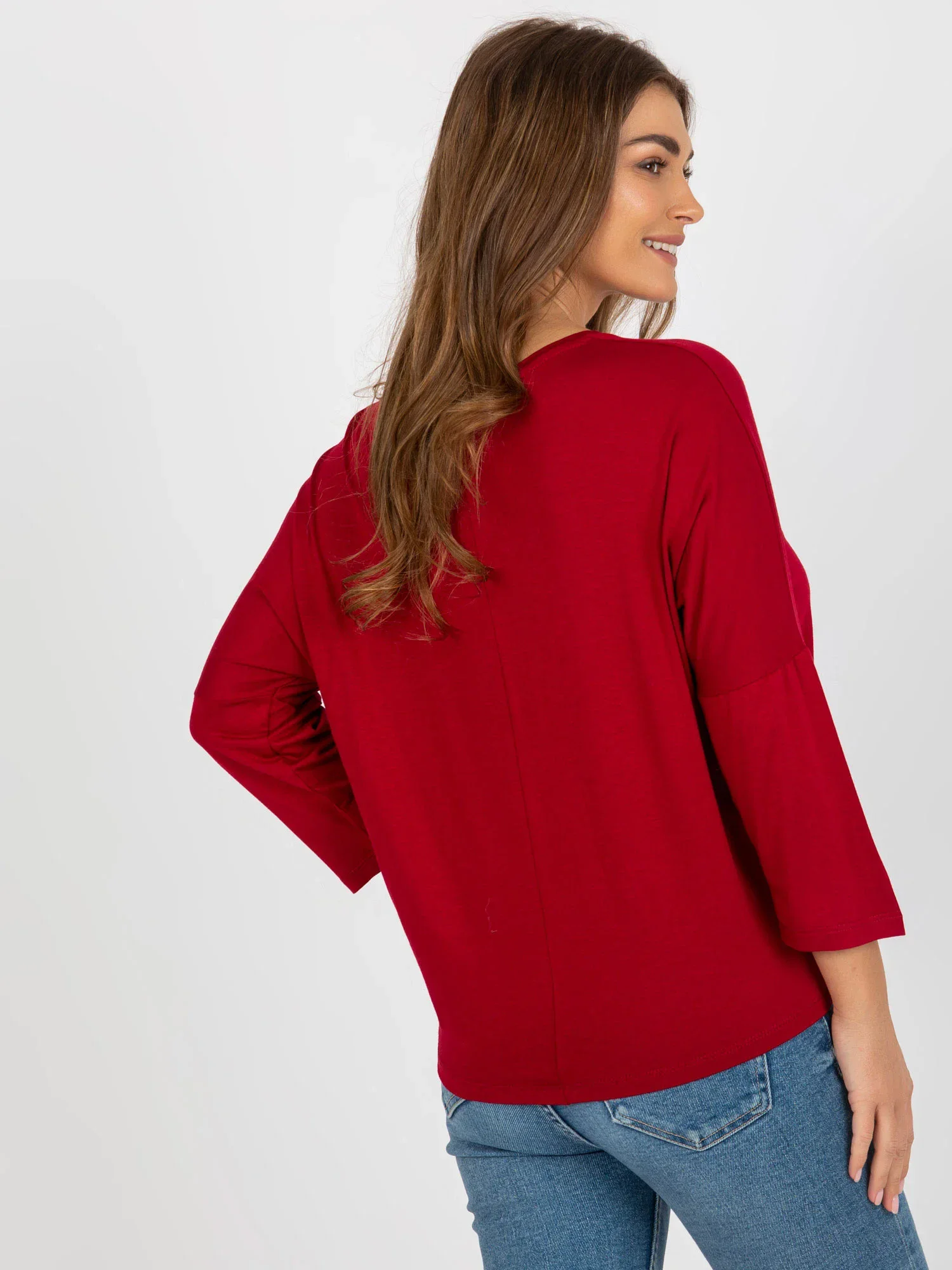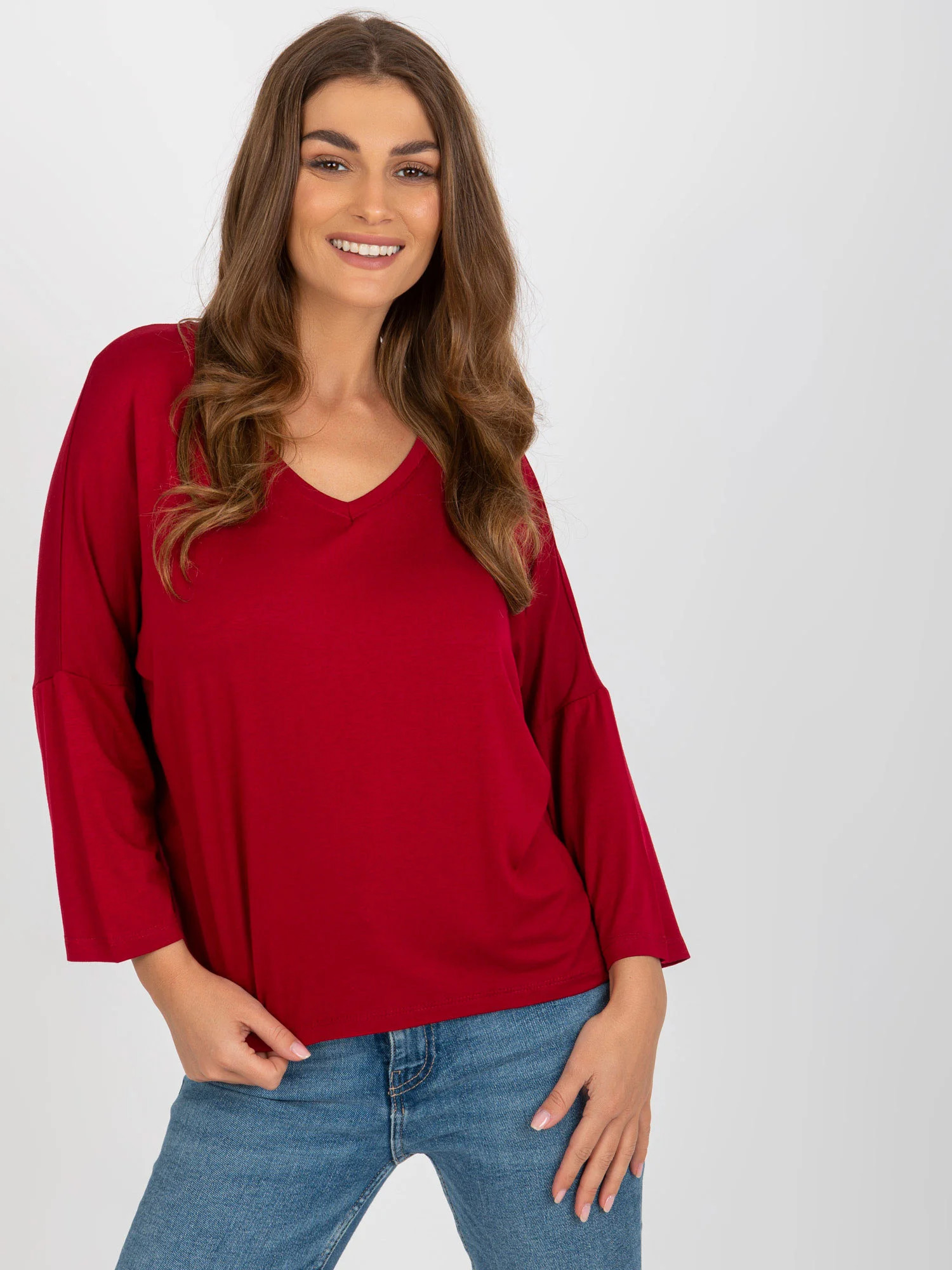 Bordó dámská základní halenka s 3/4 rukávy .