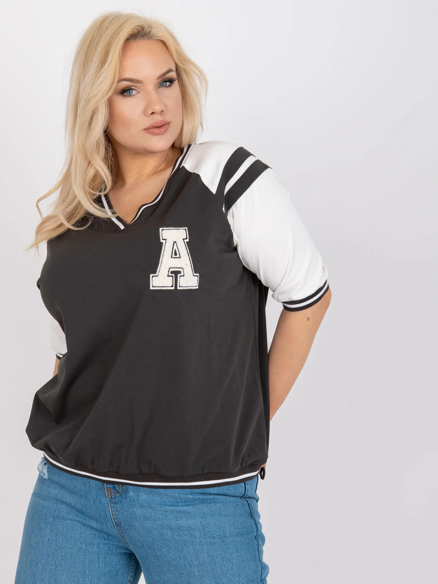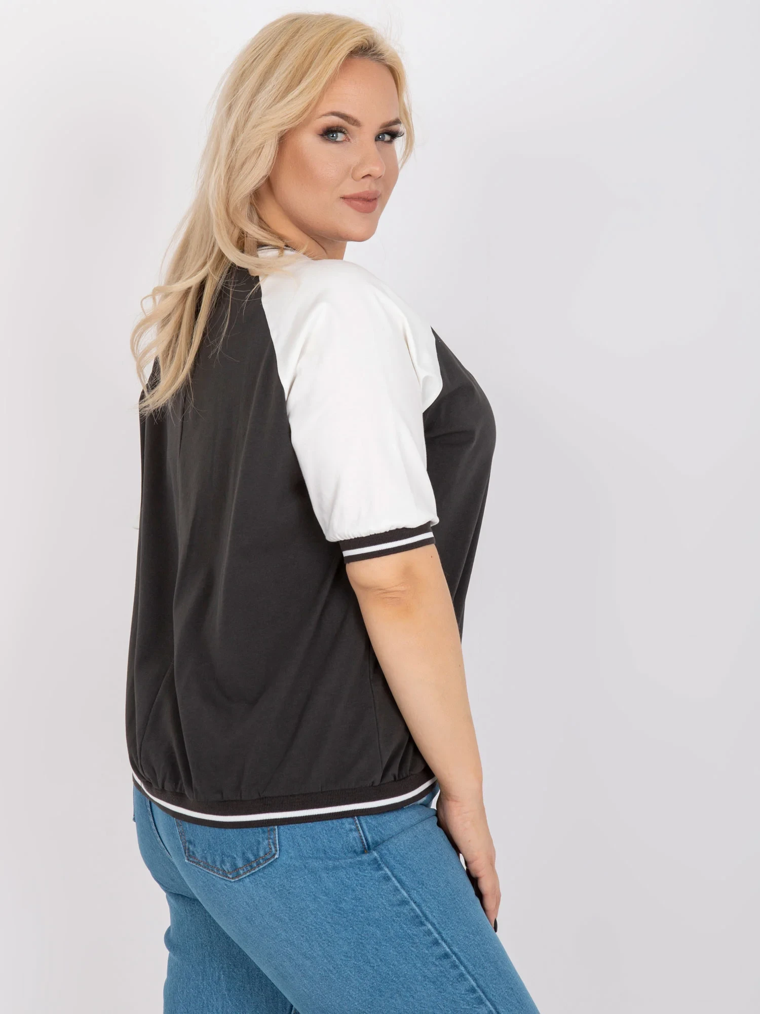 Rozměry halenky v jedné velikosti měřené na plocho: šířka v podpaží - 62 cm, celková délka - 63 cm, délka rukávu - 33 cm. EAN čárové kódy zboží jsou:
