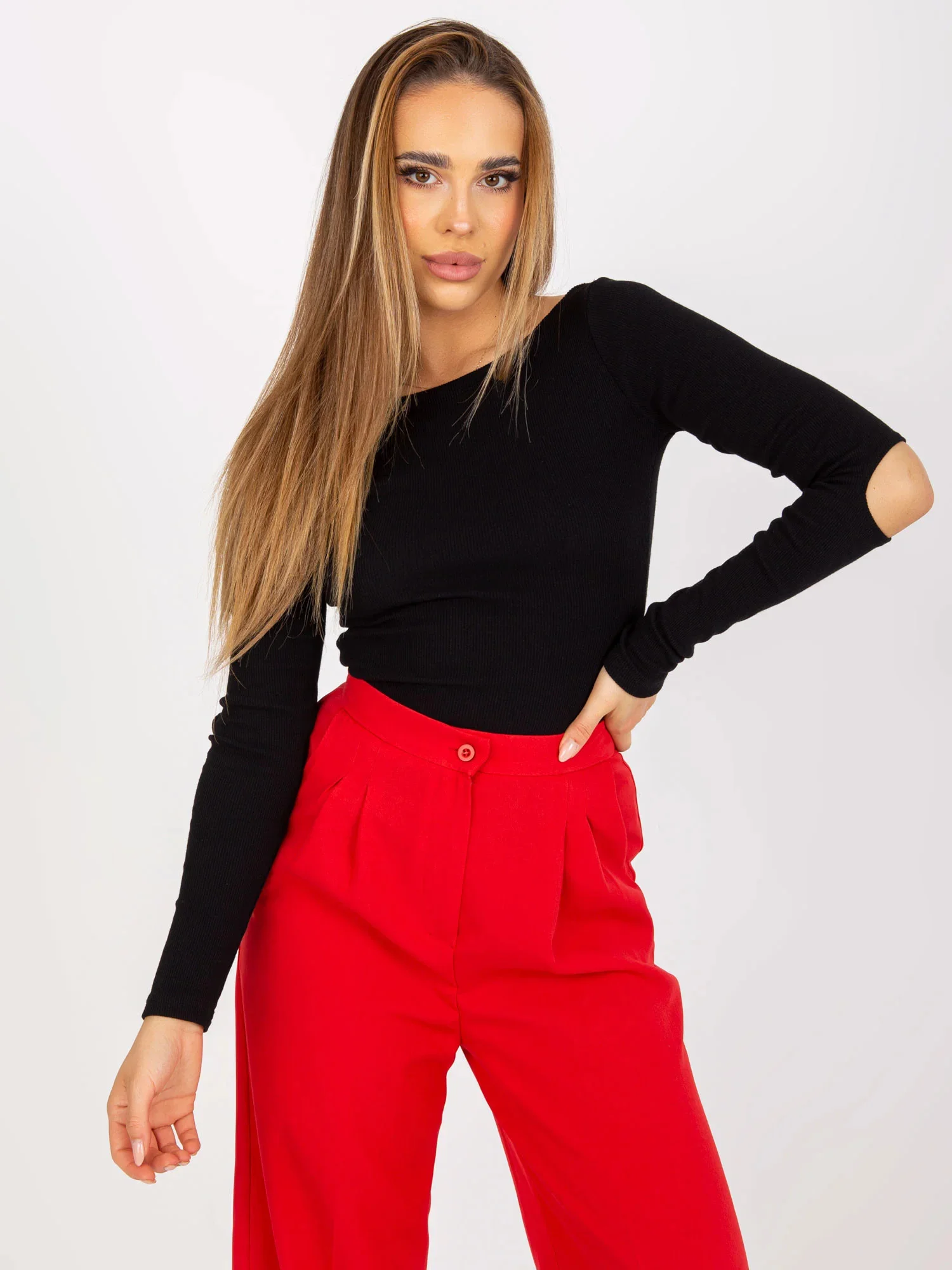 Modelka má na sobě velikost S. Rozměry modelky: výška 167 cm, prsa 82 cm, pas 59 cm, boky 83 cm.