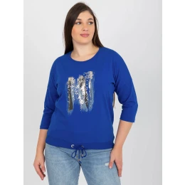 Tmavě modrá plus size halenka s 3/4 rukávy .