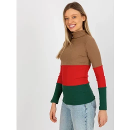 Tmavě čokoládově červená žebrovaná halenka s rolákem .