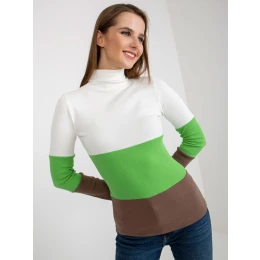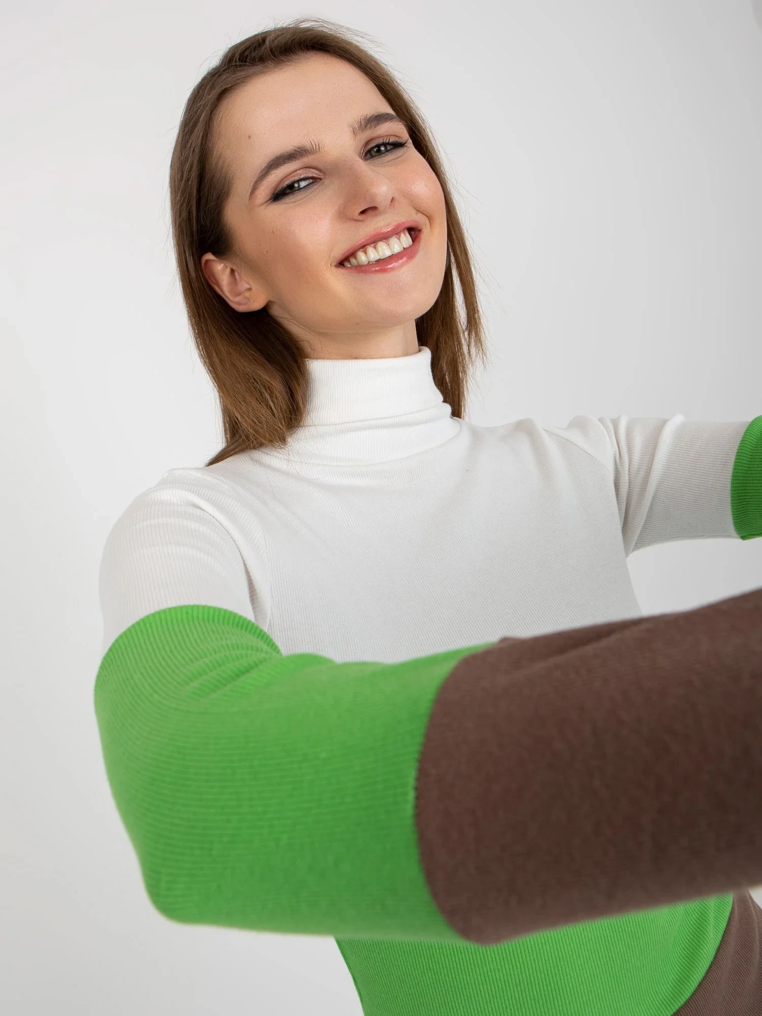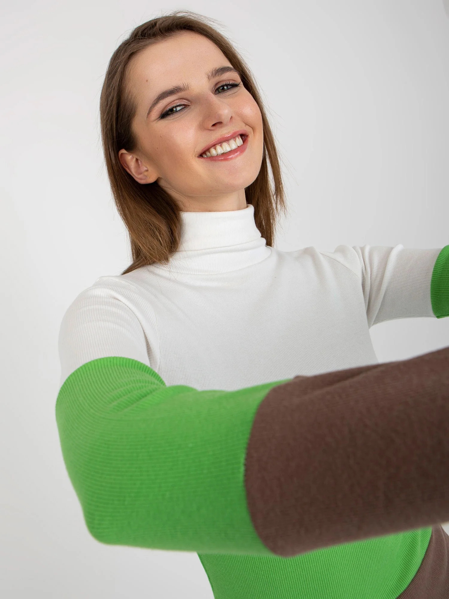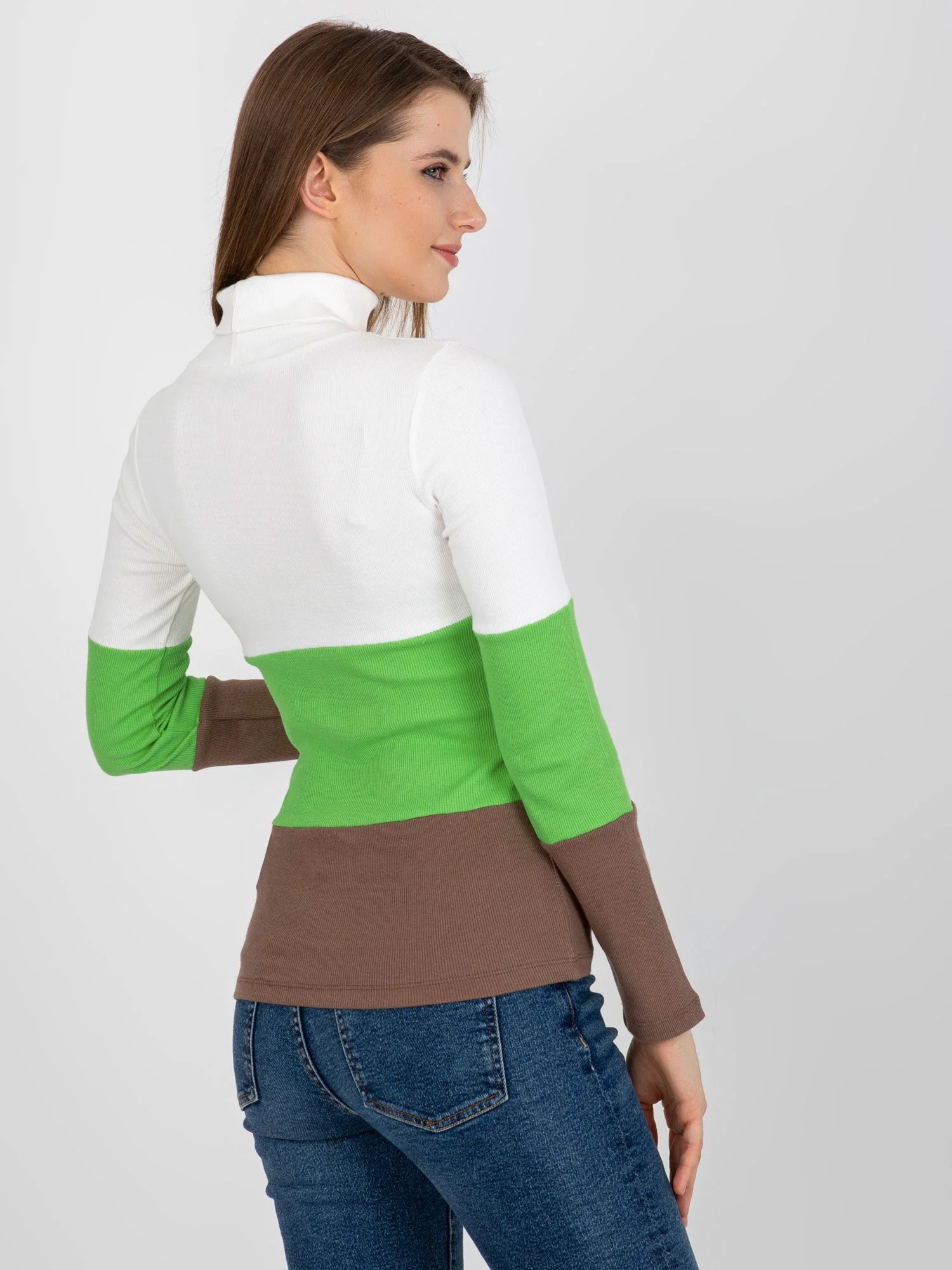 Ecru-světle zelená žebrovaná halenka s rolákem .