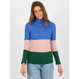 Tmavě modrá a zelená žebrovaná halenka s rolákem .