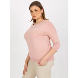 Světle růžová plus size halenka s potiskem a 3/4 rukávy .