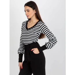 Černobílá žebrovaná halenka s výstřihem do V BASIC FEEL GOOD .