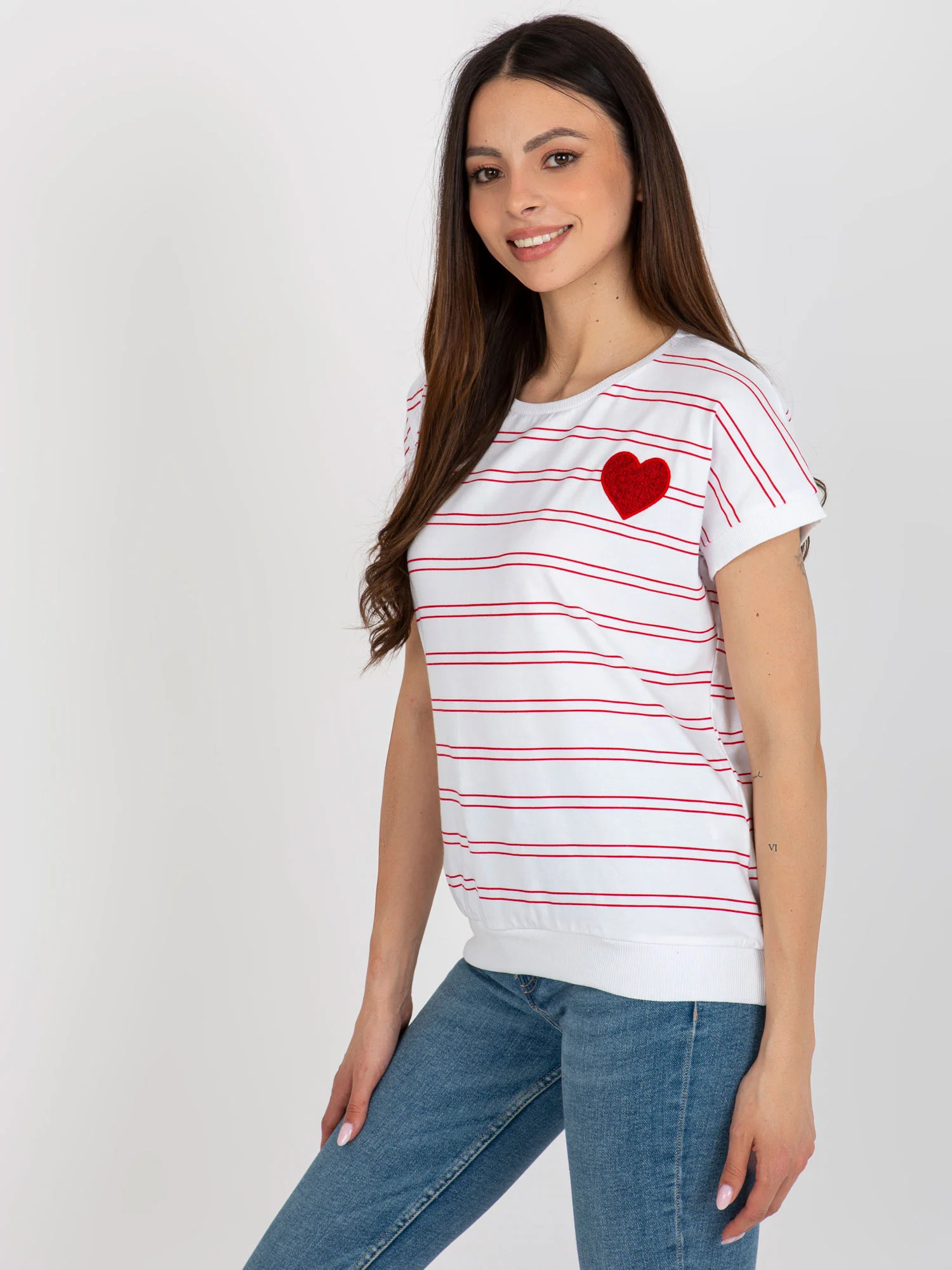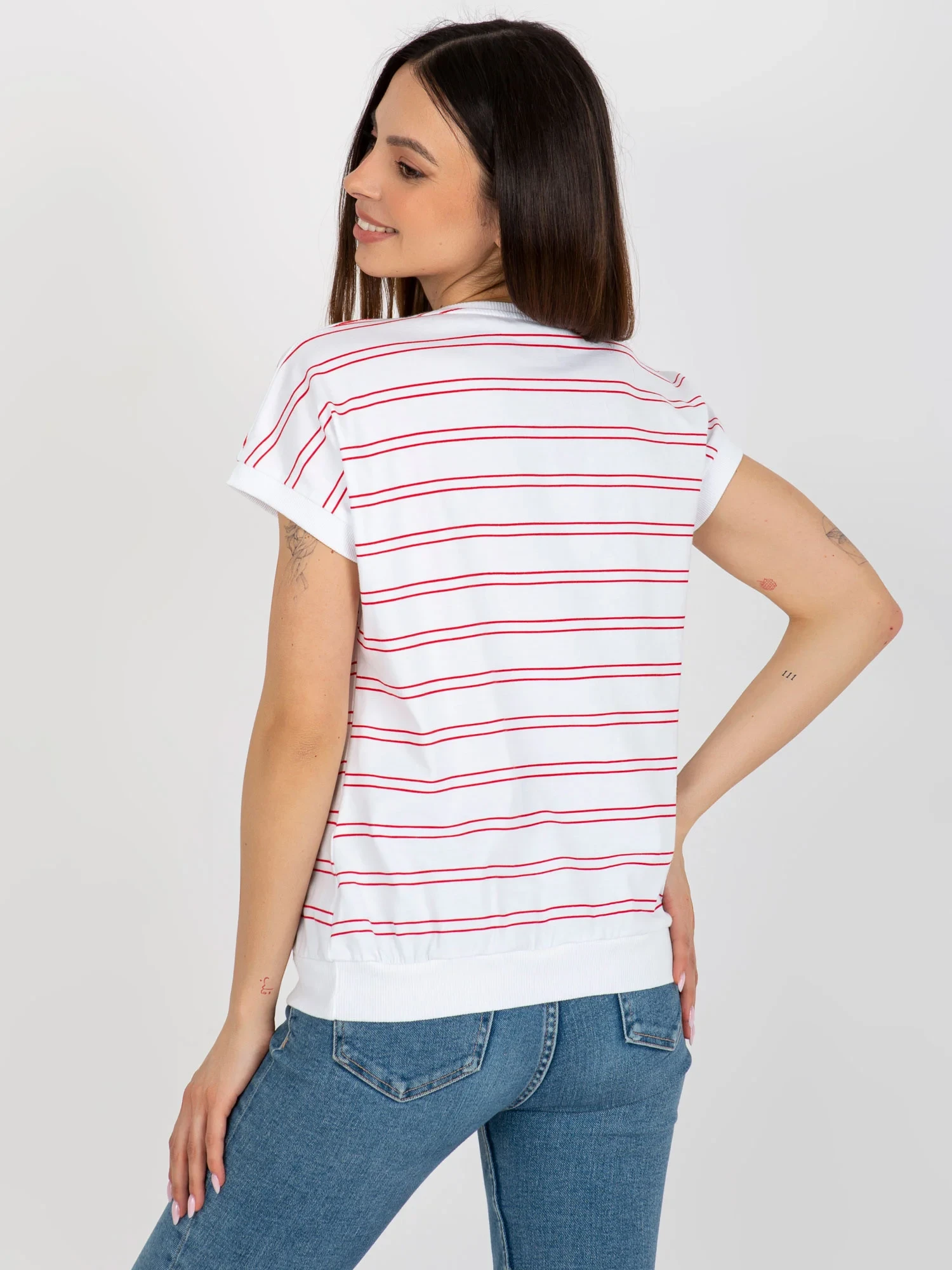 Červenobílá pruhovaná halenka s krátkými rukávy .