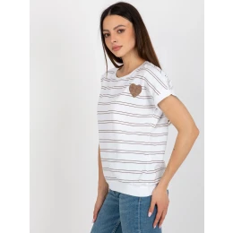 Hnědobílá dámská pruhovaná halenka s nášivkou .