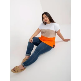 Bílo-oranžová pruhovaná halenka plus size .