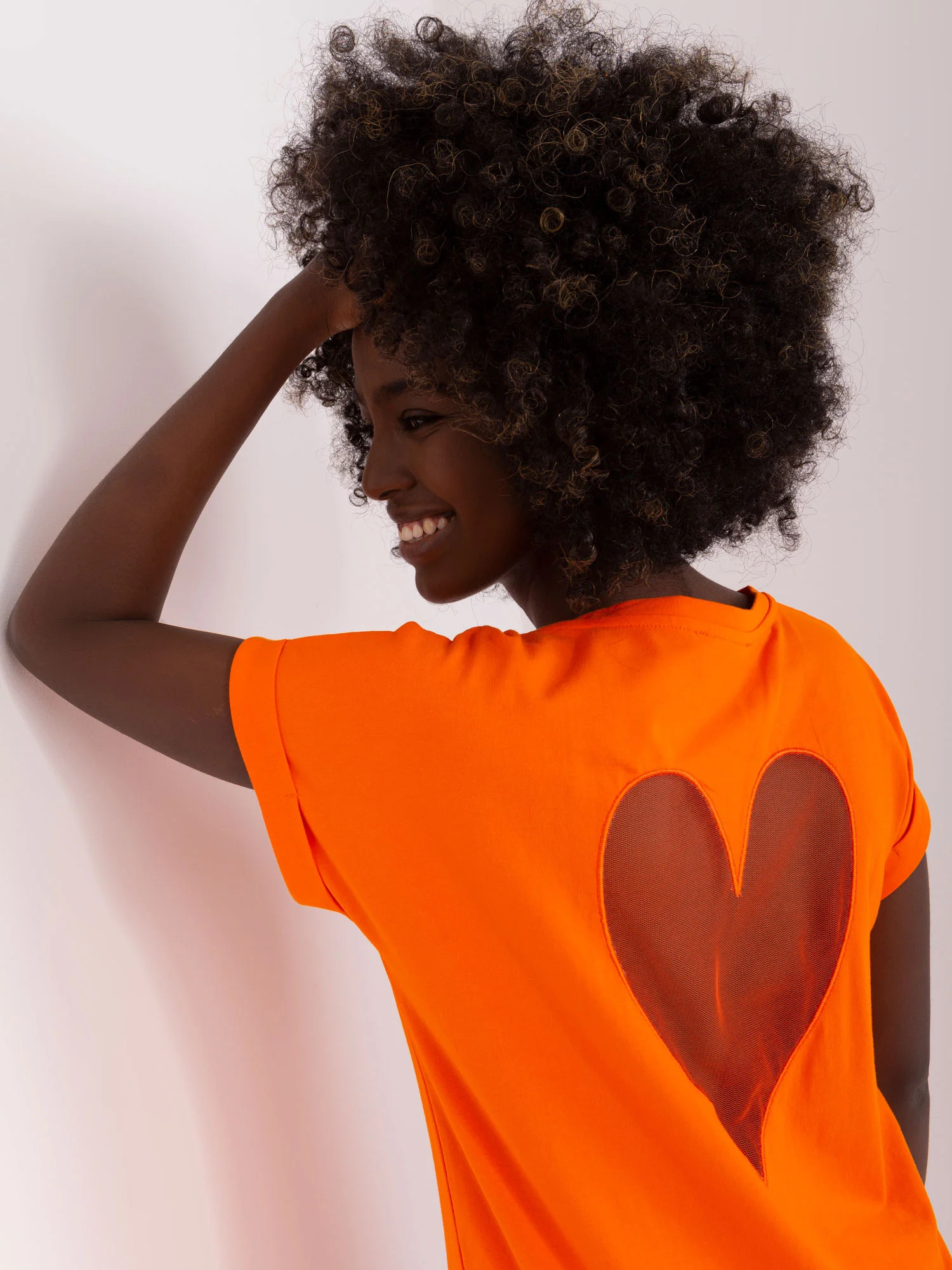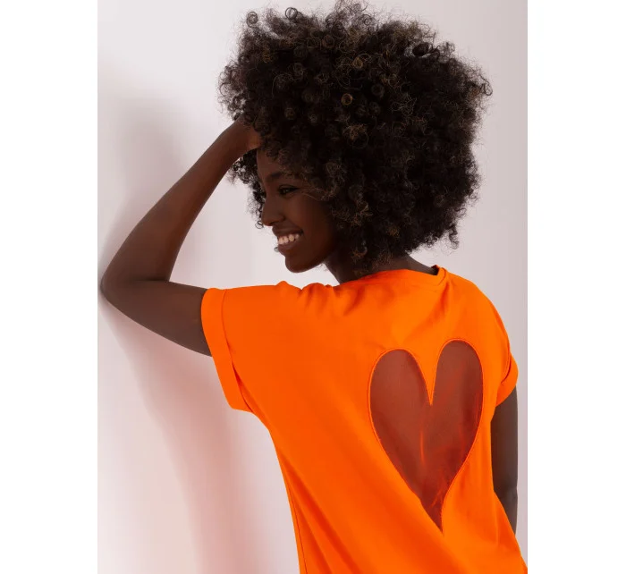 Oranžová halenka s průhlednou vložkou .