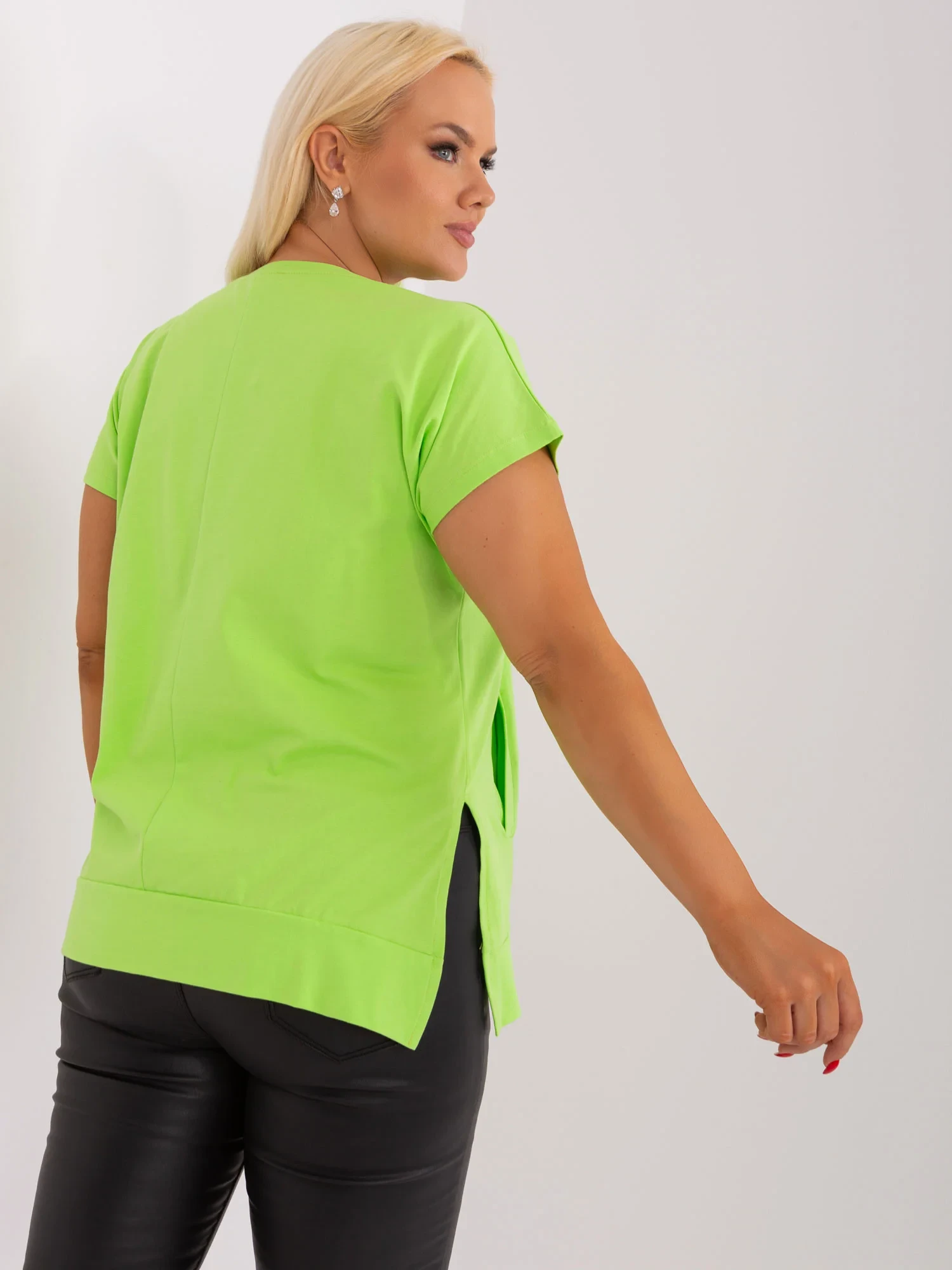 Světle zelená plus size základní halenka s kapsami.