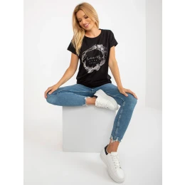 Černá halenka pro každodenní nošení s potiskem RUE PARIS .