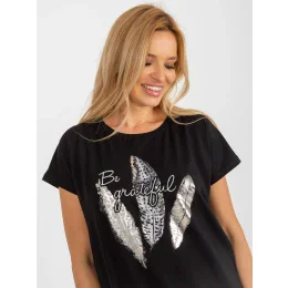 Černá bavlněná halenka s potiskem RUE PARIS .