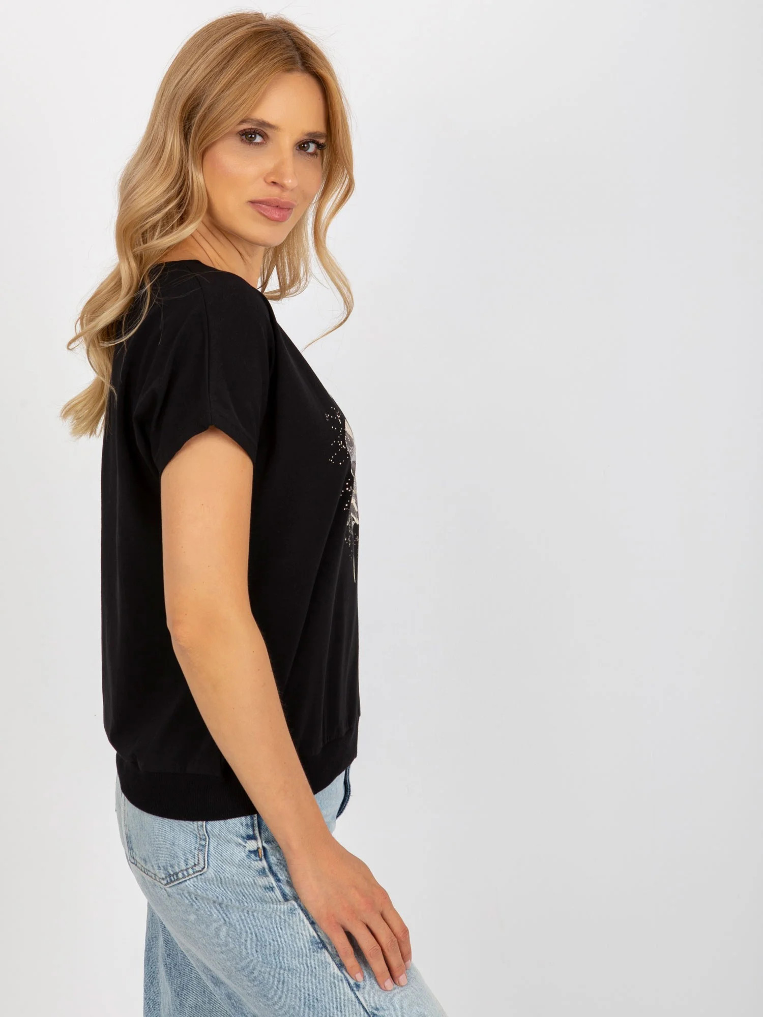Černá halenka pro každodenní nošení s potiskem RUE PARIS .