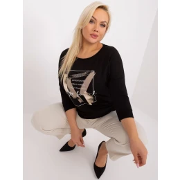 Černá dámská plus size halenka s 3/4 rukávy.