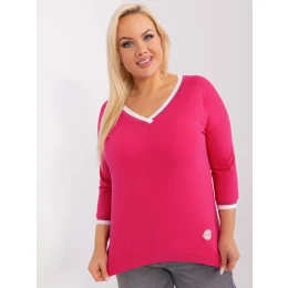 Fuchsiová hladká halenka plus size s žebrovanými manžetami .
