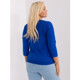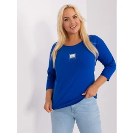 Kobaltová dámská plus size halenka s 3/4 rukávy.