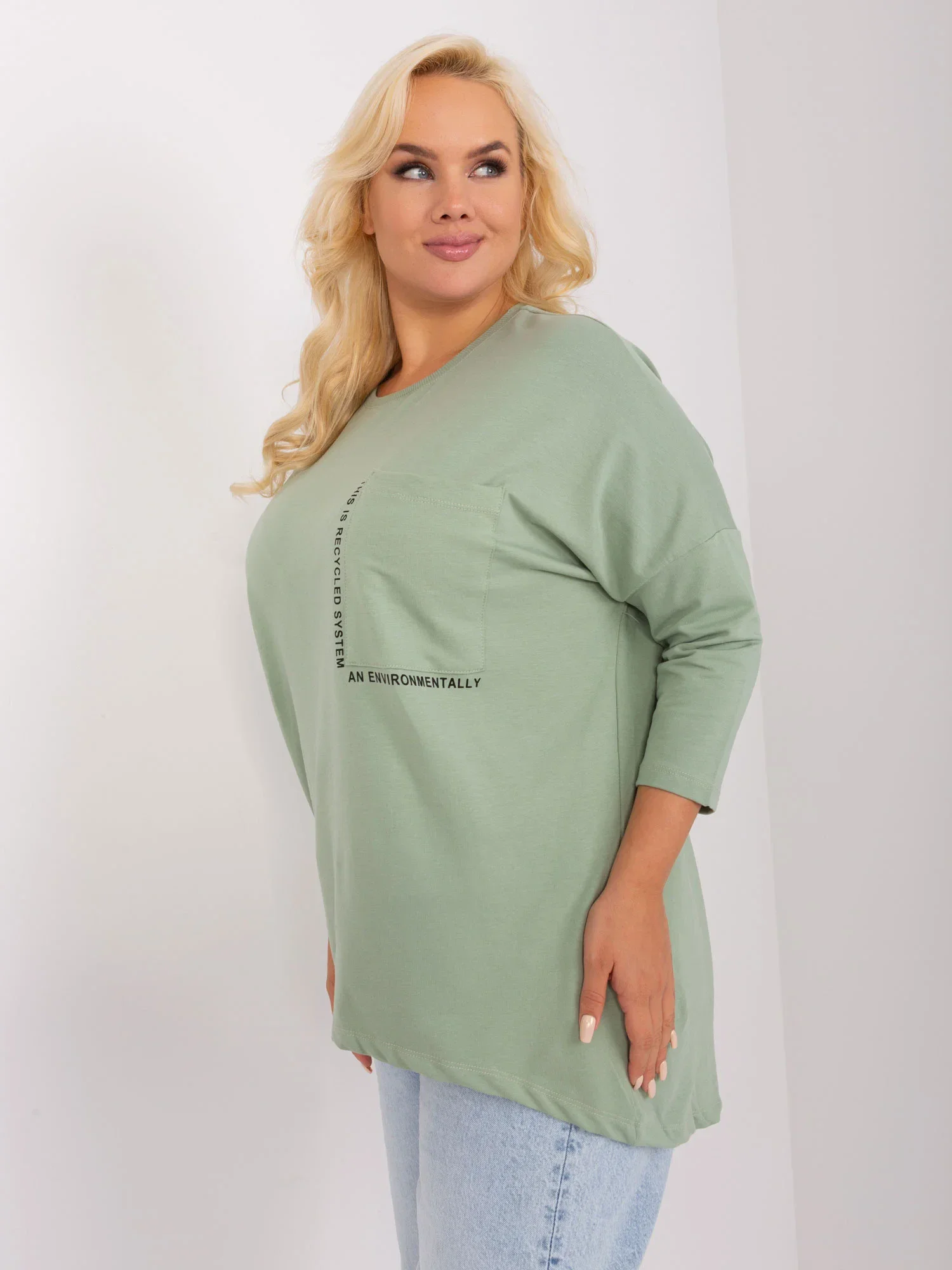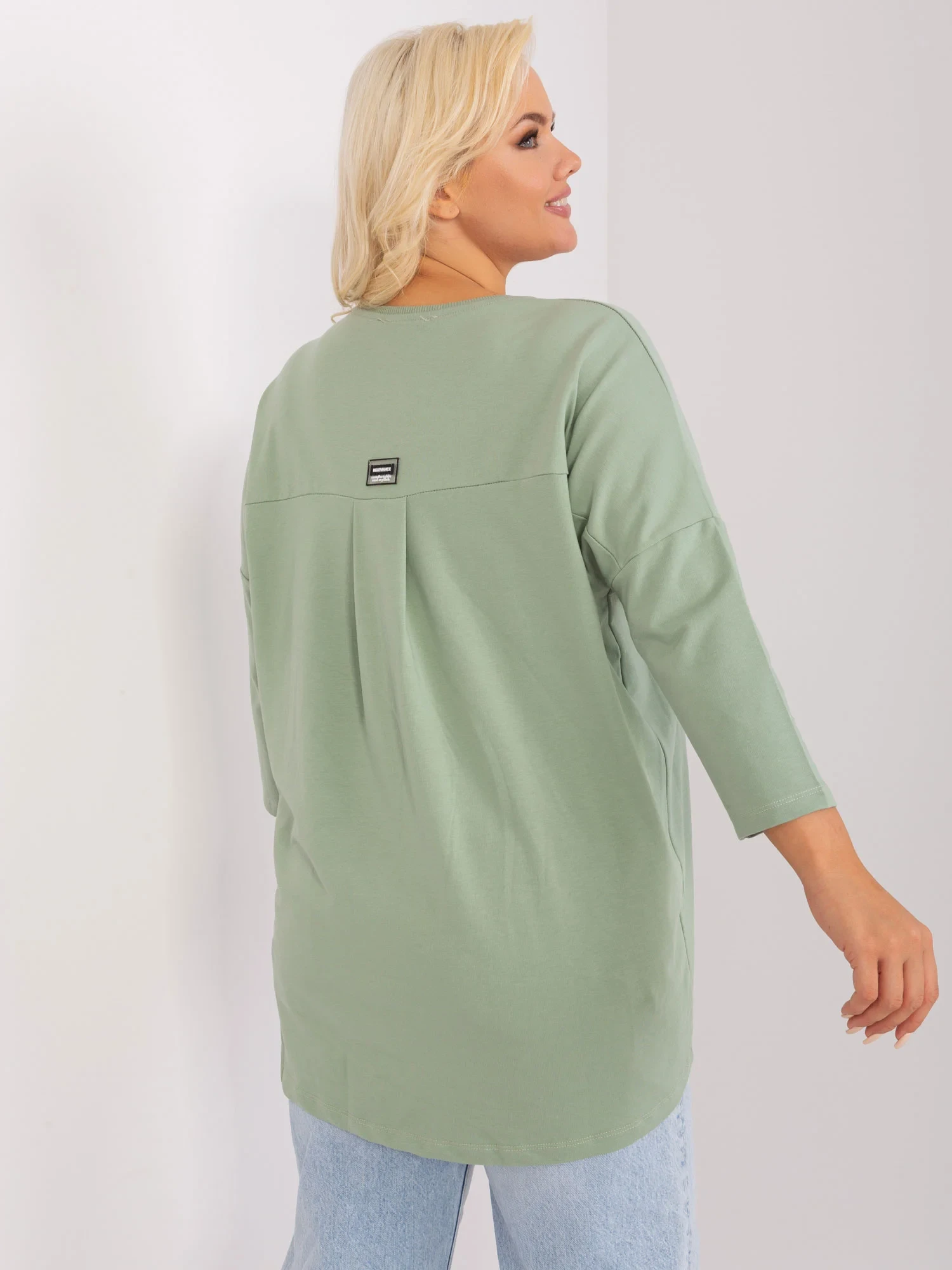 Bavlněná halenka plus size v pistáciovém odstínu.