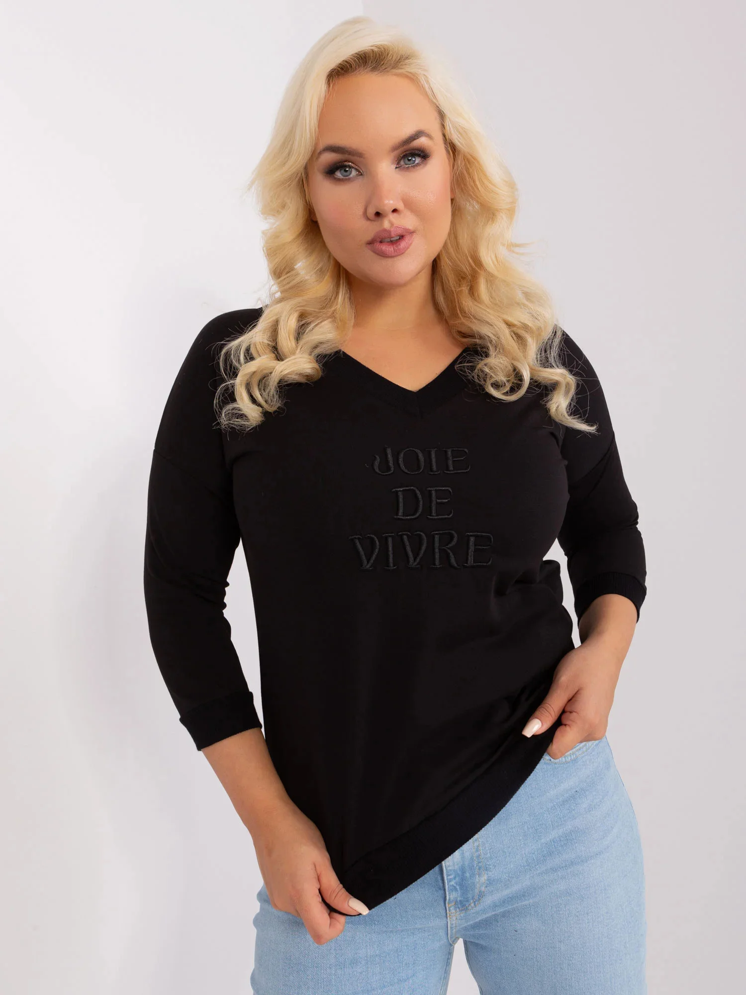 Černá plus size dámská halenka z bavlny.