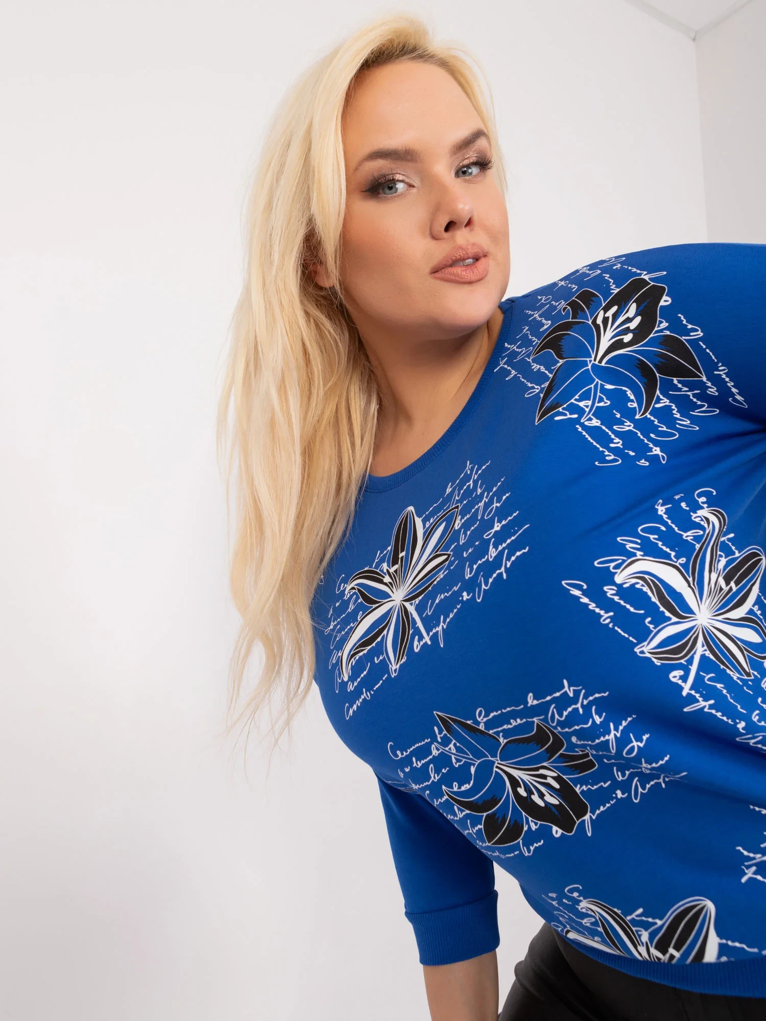 Rozměry halenky v jedné velikosti měřené na plocho: šířka v podpaží - 62 cm, délka rukávu - 38 cm, celková délka - 60 cm .