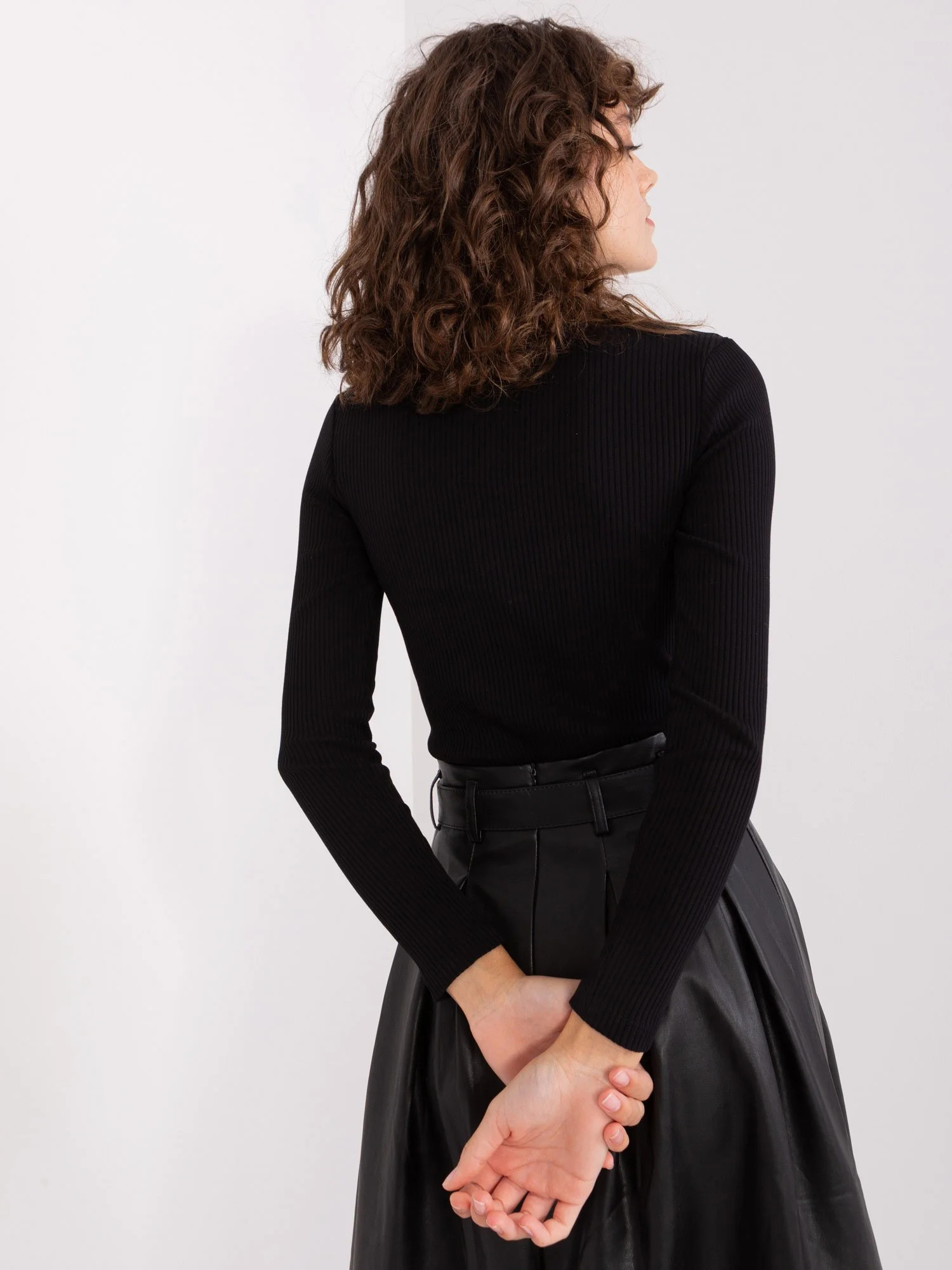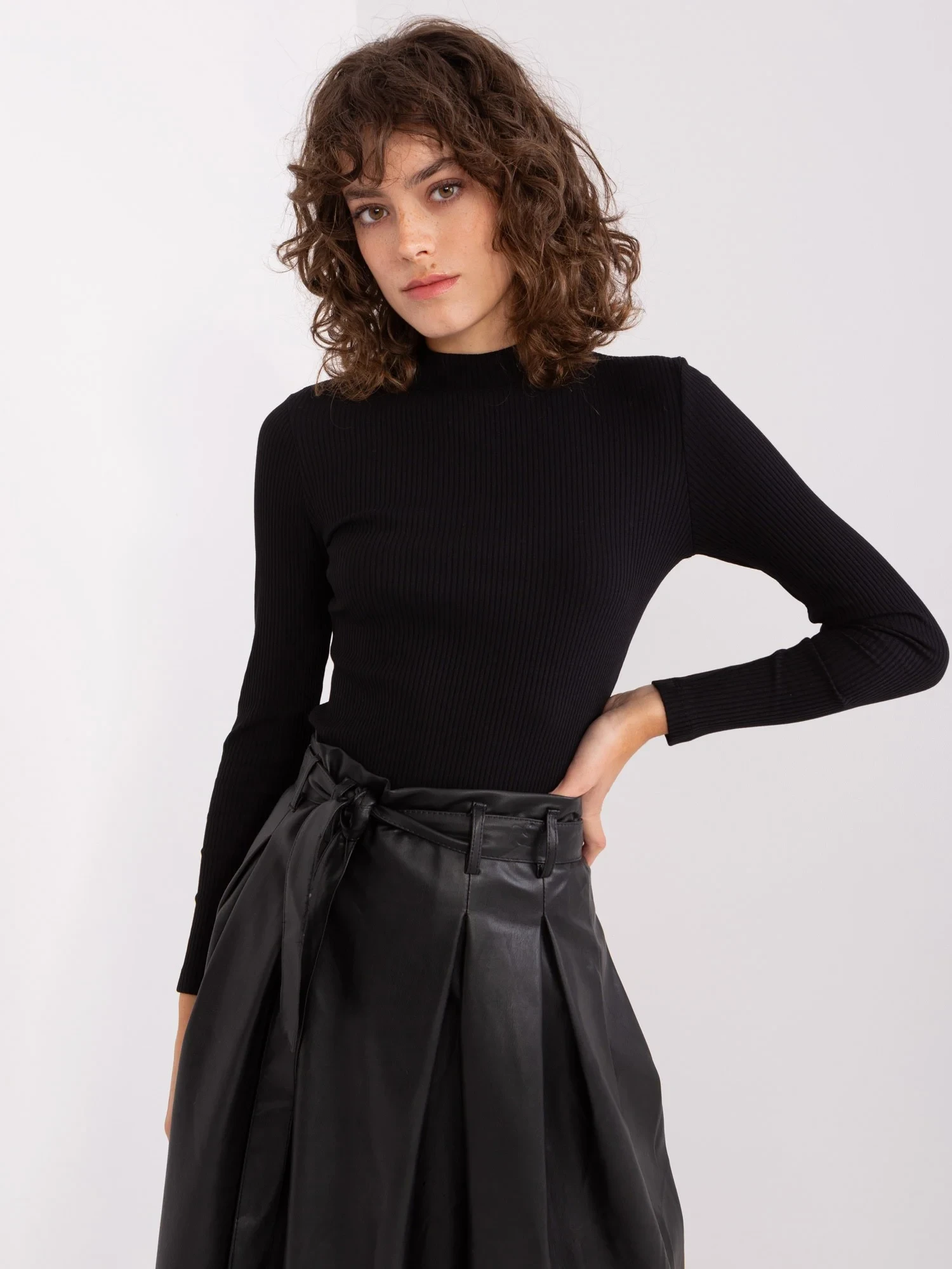 Modelka má na sobě velikost S/M. Rozměry modelky: výška 177 cm, poprsí 84 cm, pas 62 cm, boky 89 cm.