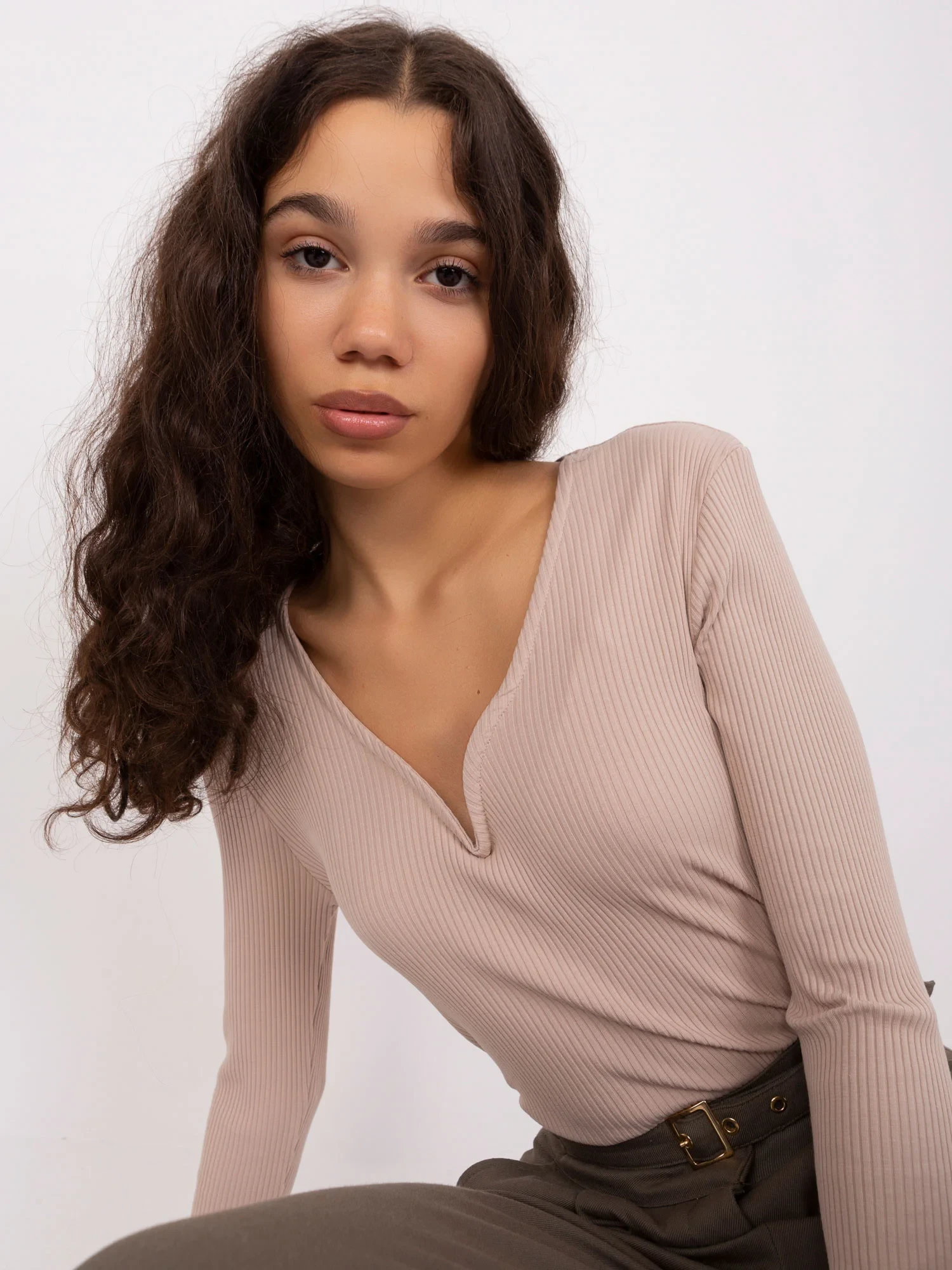 Béžová halenka s vycpaným výstřihem BASIC FEEL GOOD .