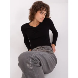 Černá žebrovaná halenka s dlouhým rukávem a výstřihem do V .