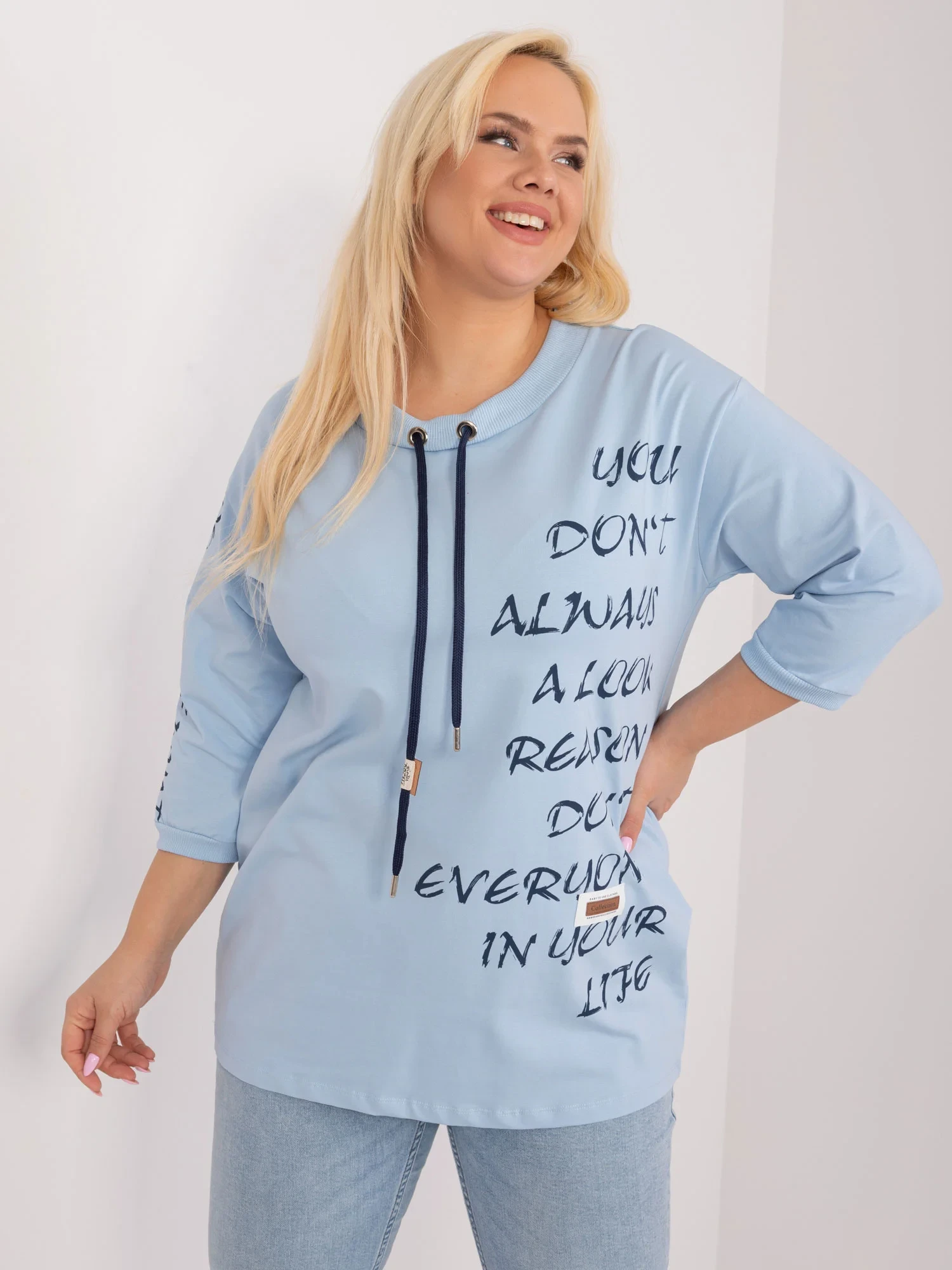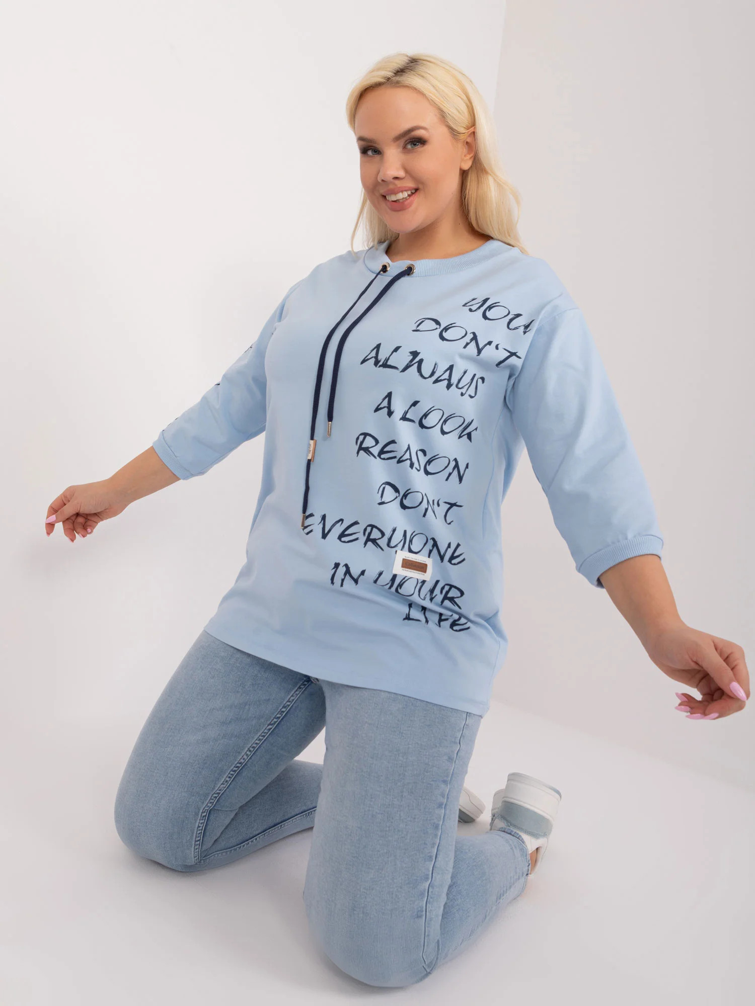 Rozměry halenky v jedné velikosti měřené na plocho: šířka v podpaží - 60 cm, délka rukávu - 41 cm, celková délka - 75 cm .