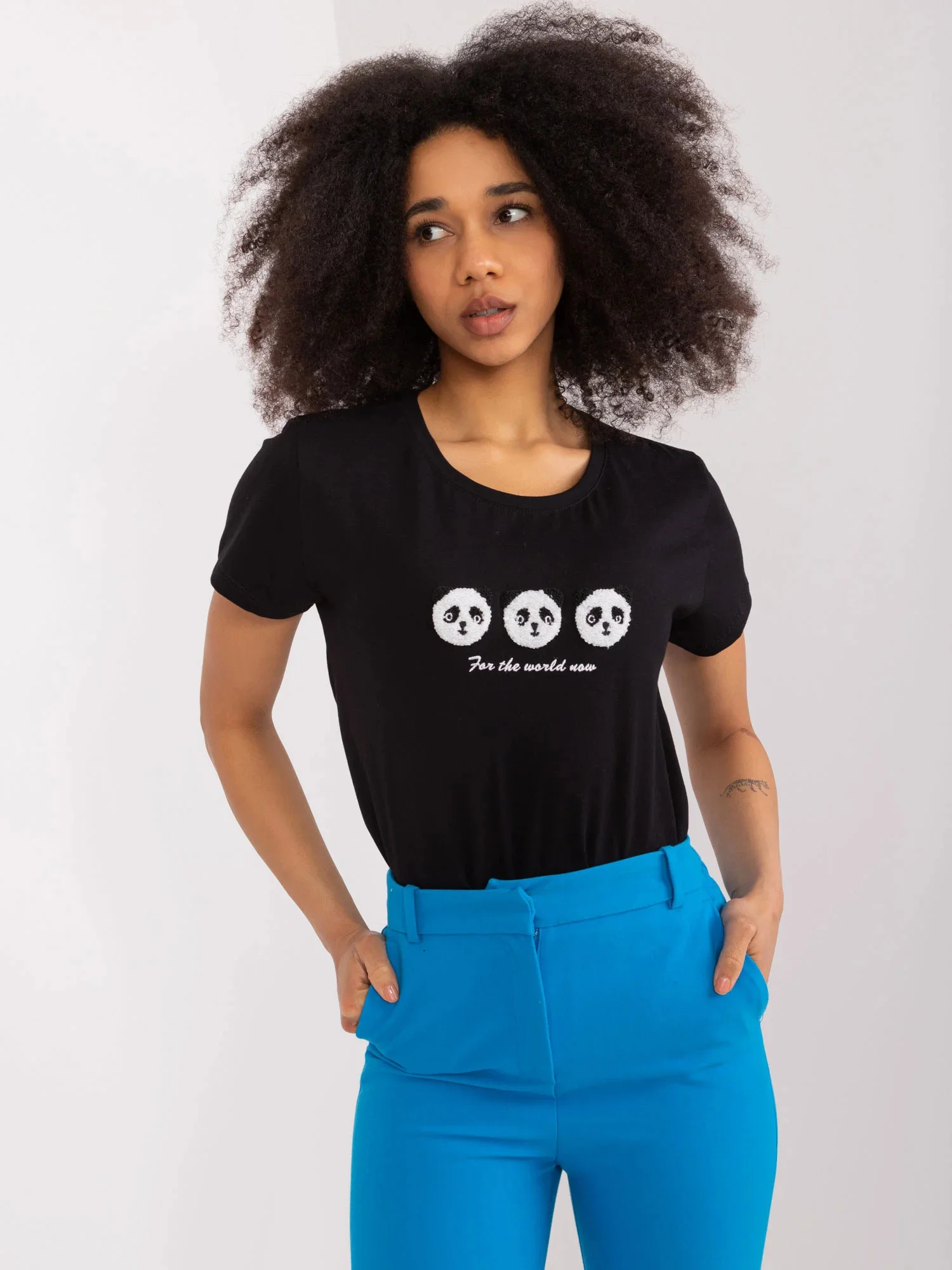 Modelka má na sobě velikost S/M. Rozměry modelky: výška 170 cm, poprsí 86 cm, pas 65 cm, boky 92 cm.
