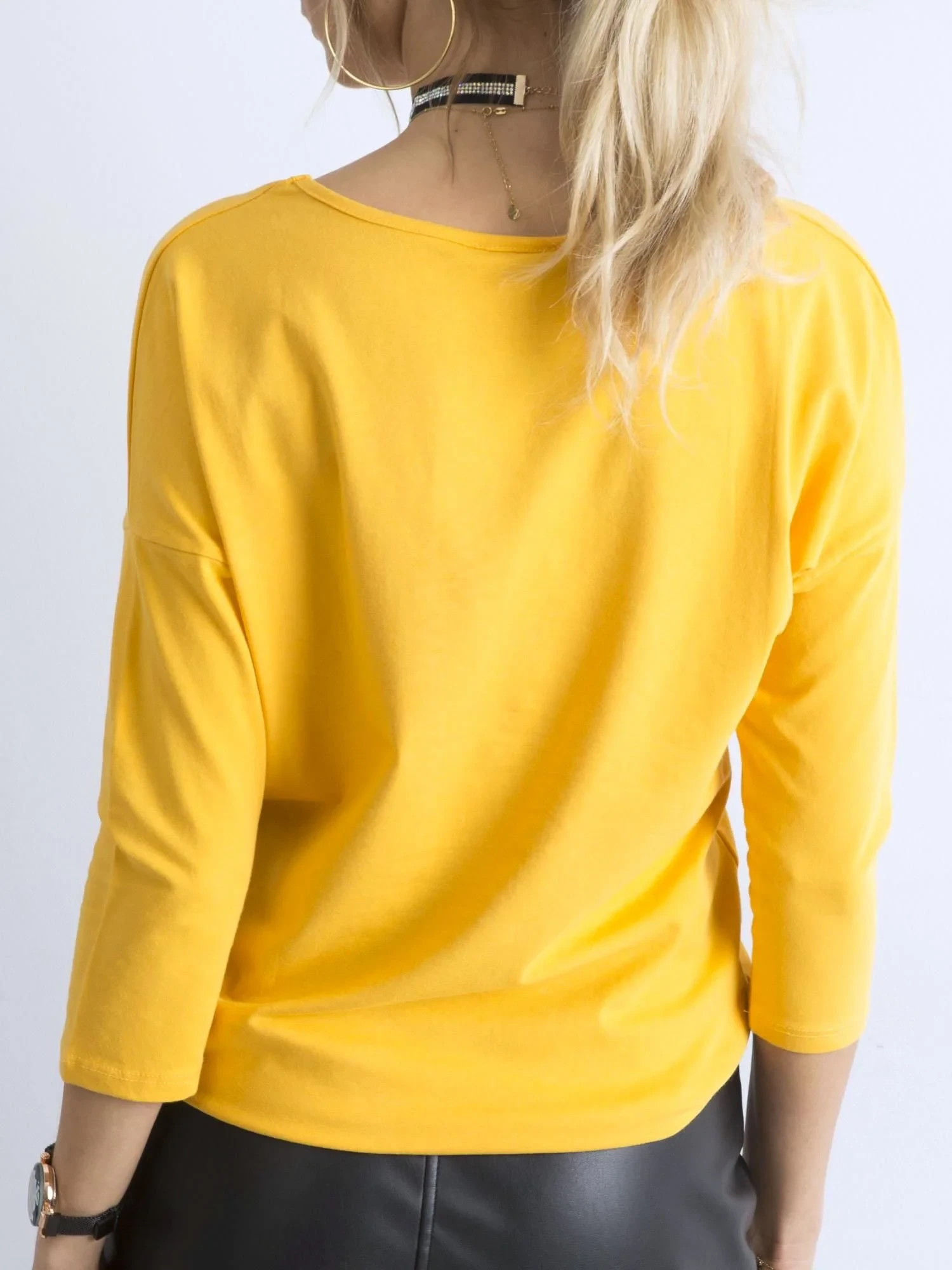 Základní halenka s 3/4 rukávy tmavě žluté barvy.