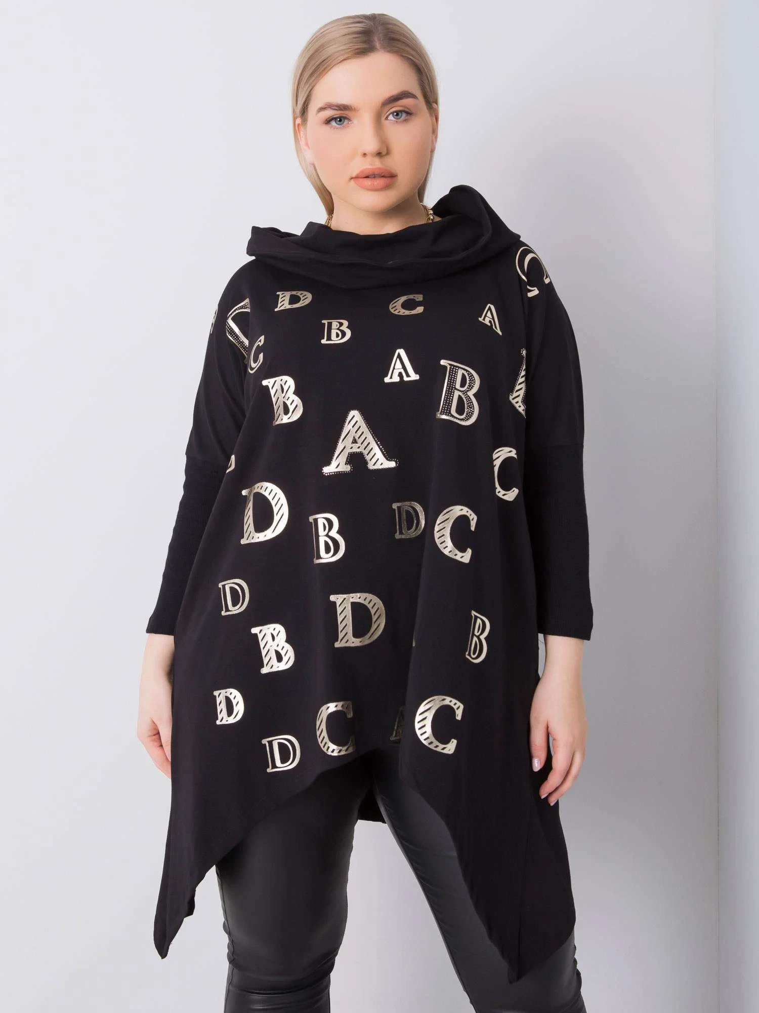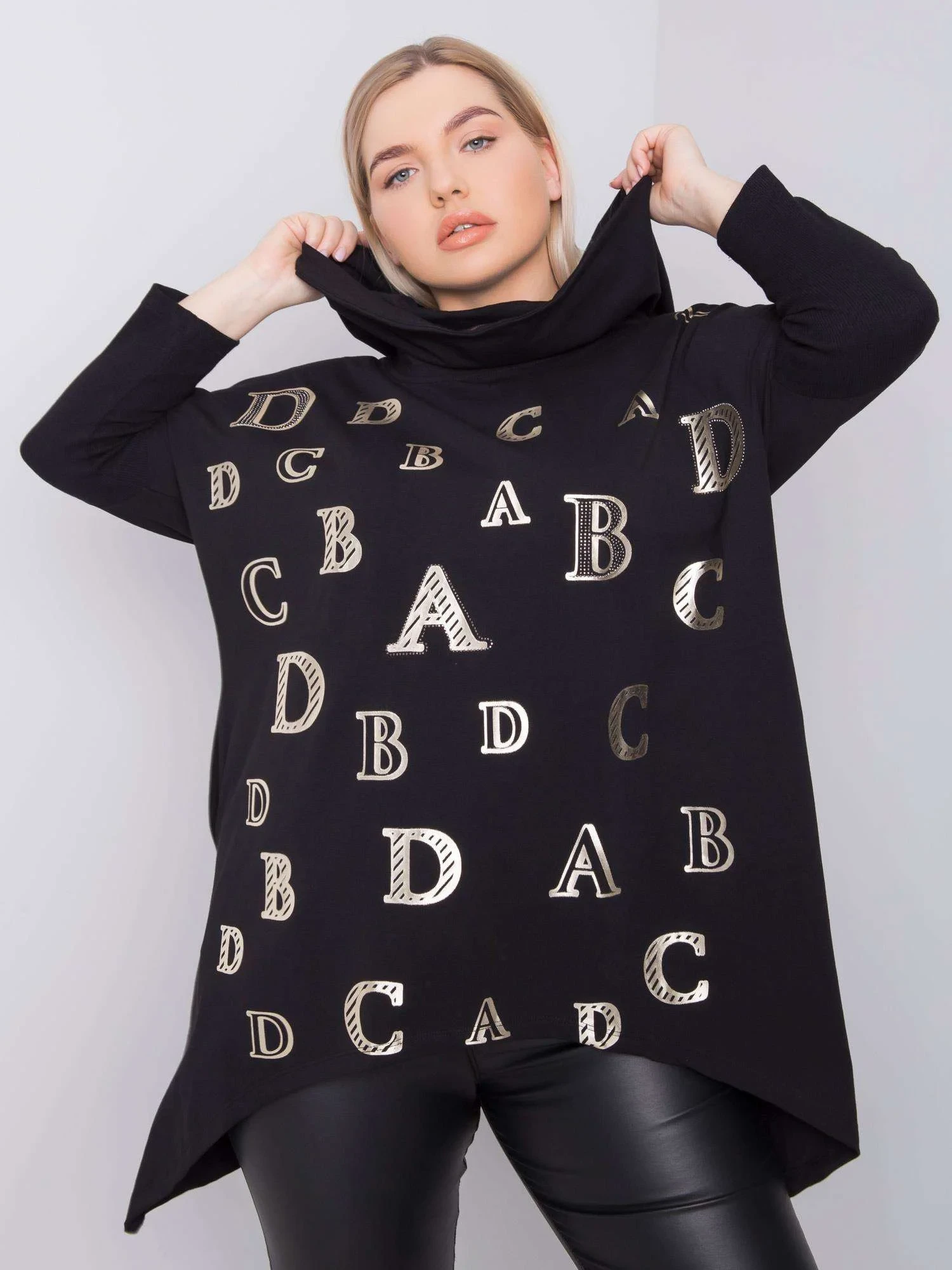 Černá plus size mikina s potiskem.