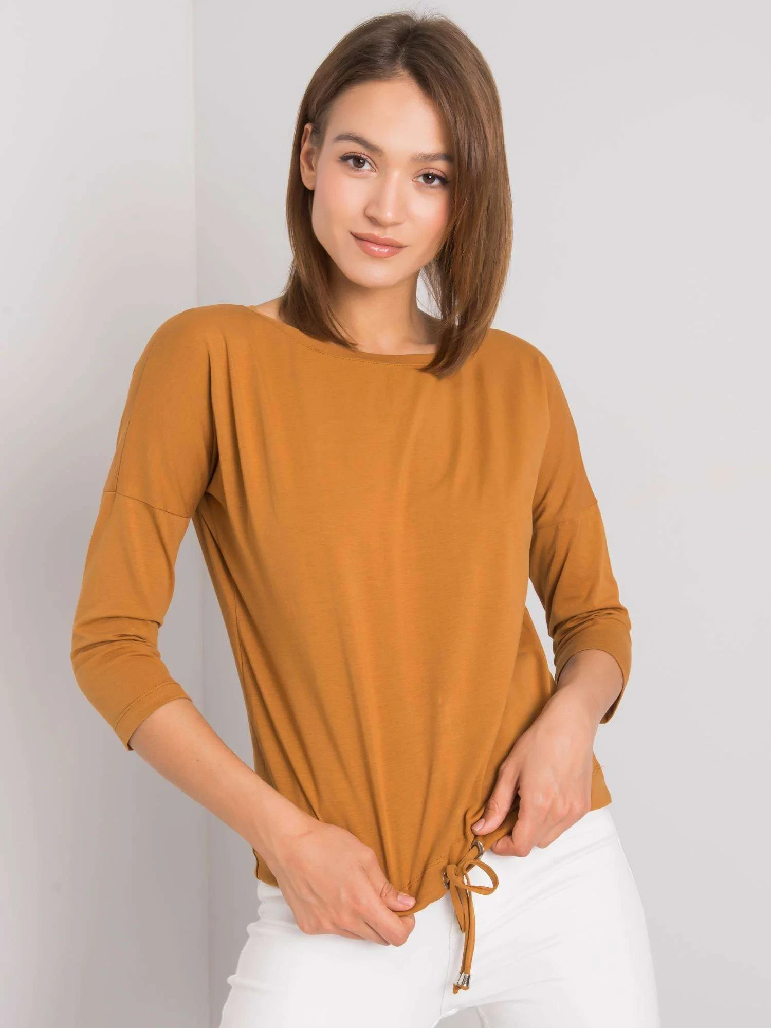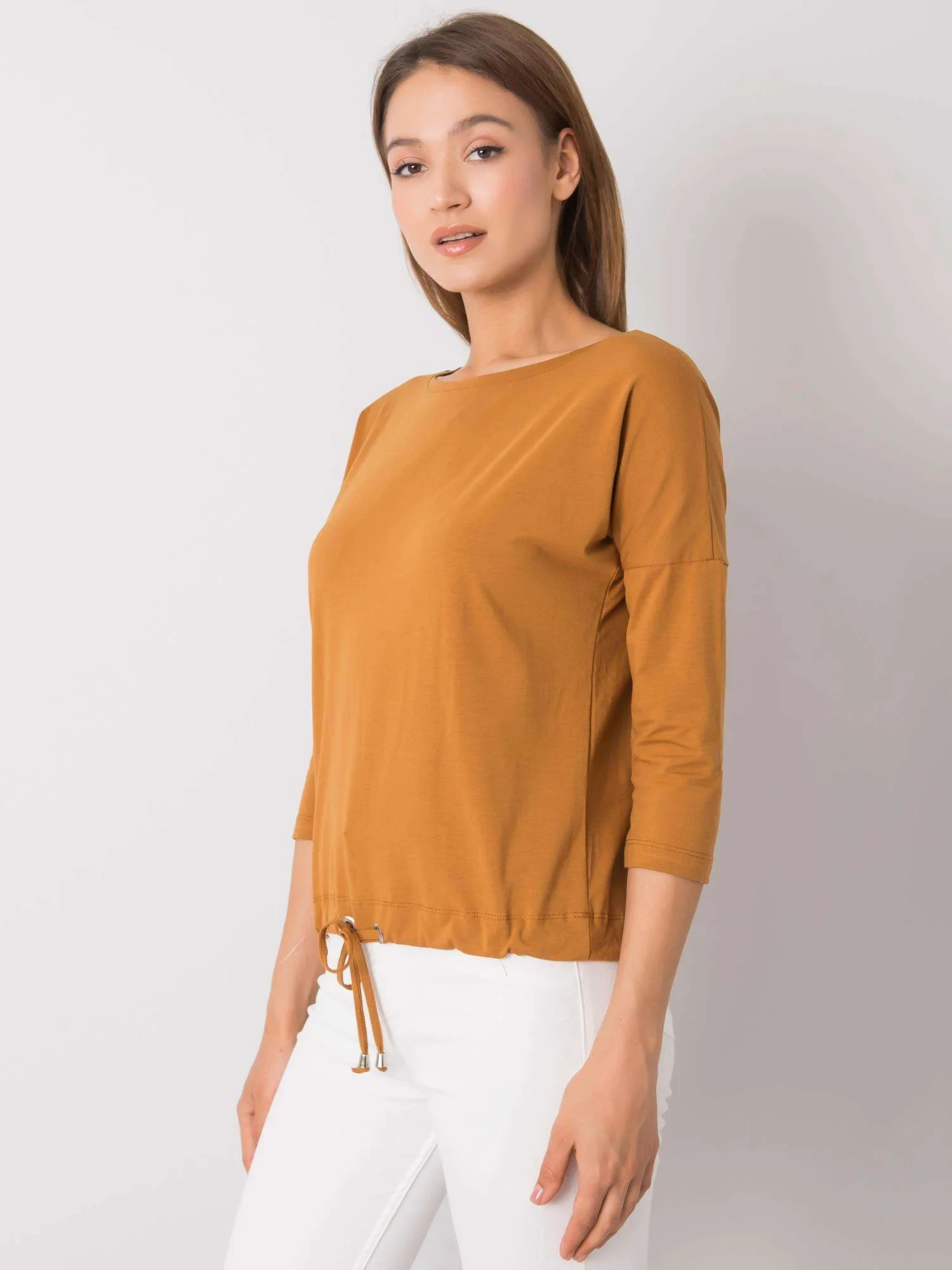 Dámská bavlněná halenka ve světle hnědé barvě.