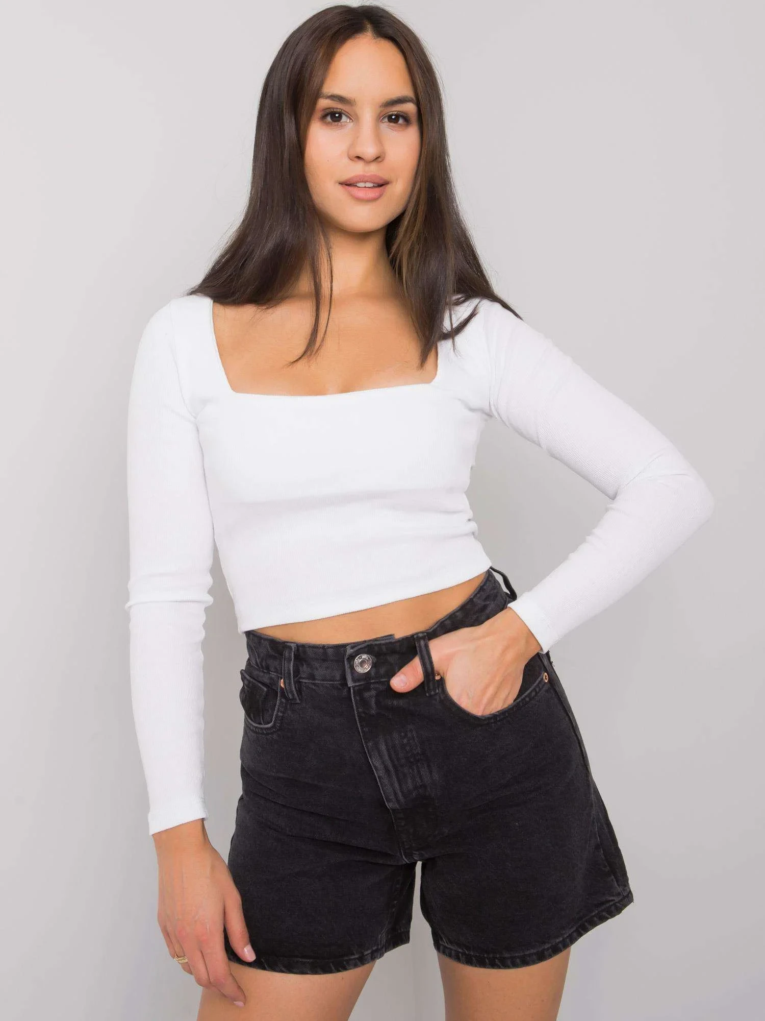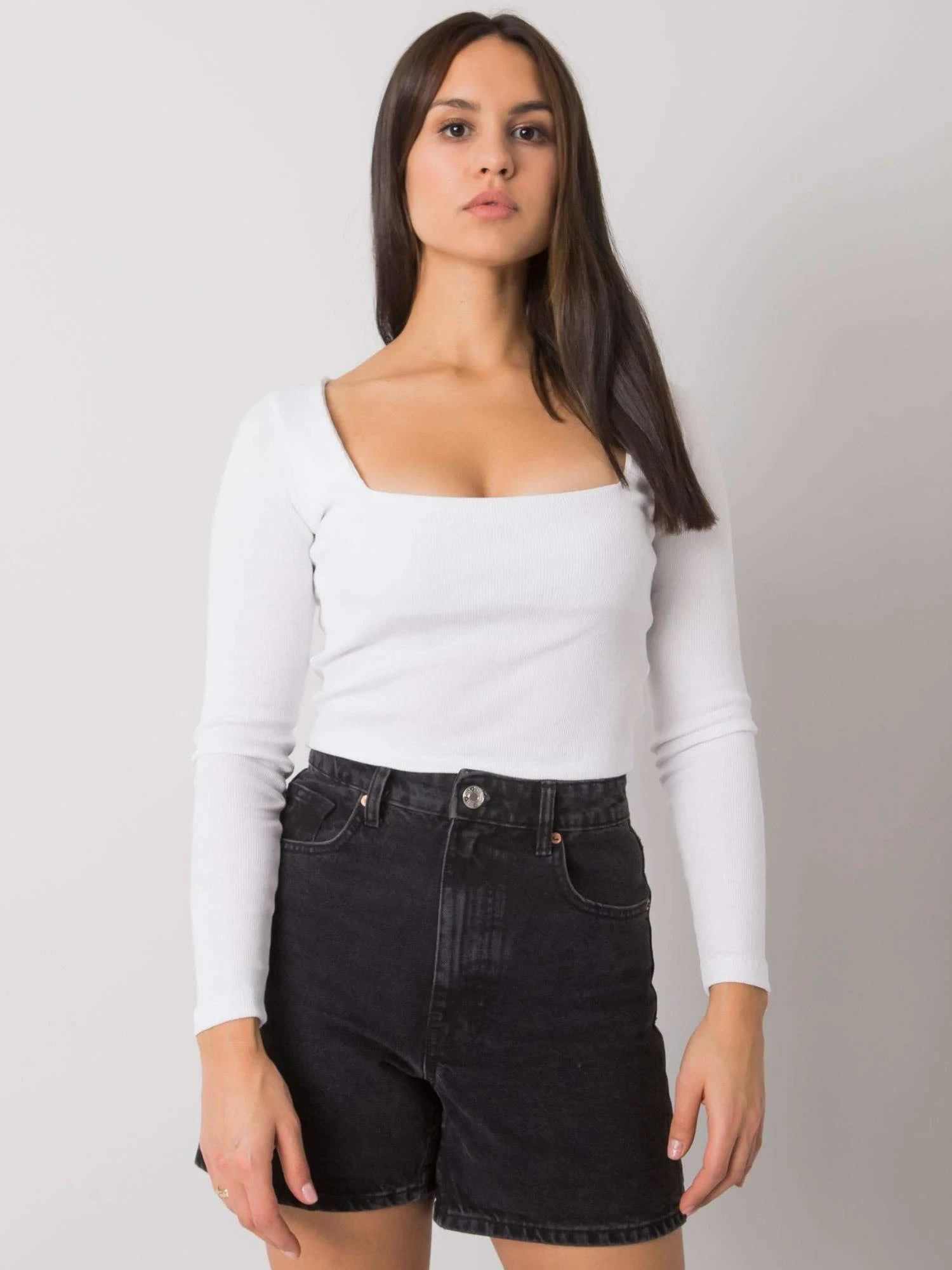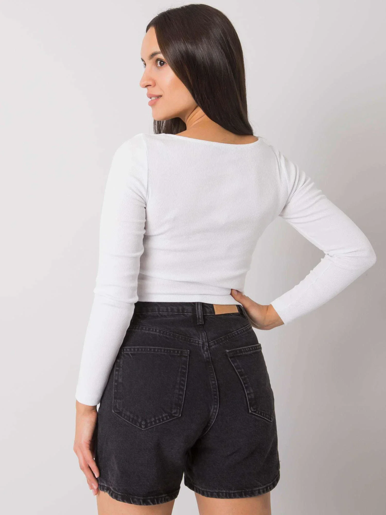 RUE PARIS Bílá krátká žebrovaná halenka.