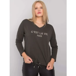 Tmavě khaki dámská plus size halenka s nápisem.