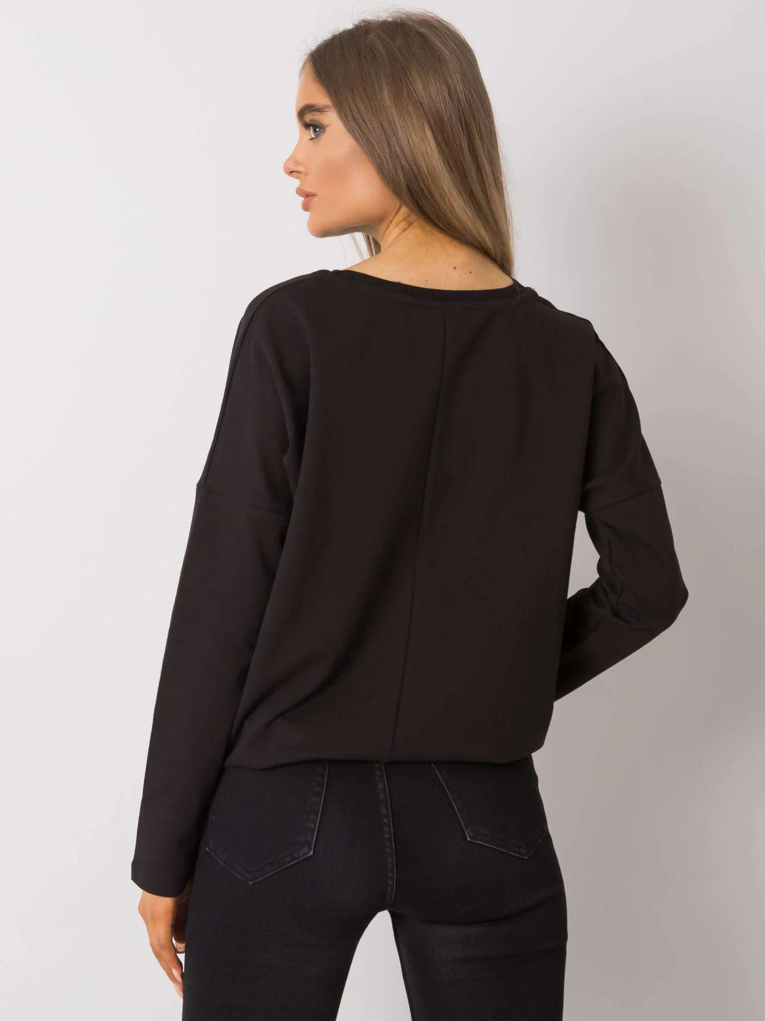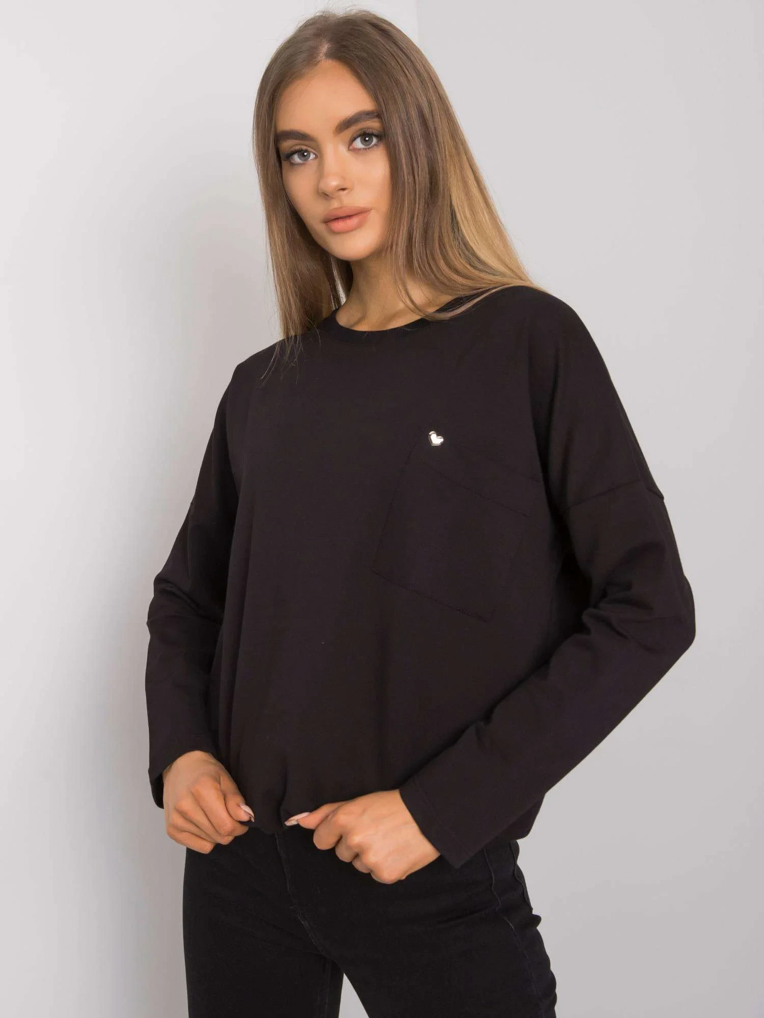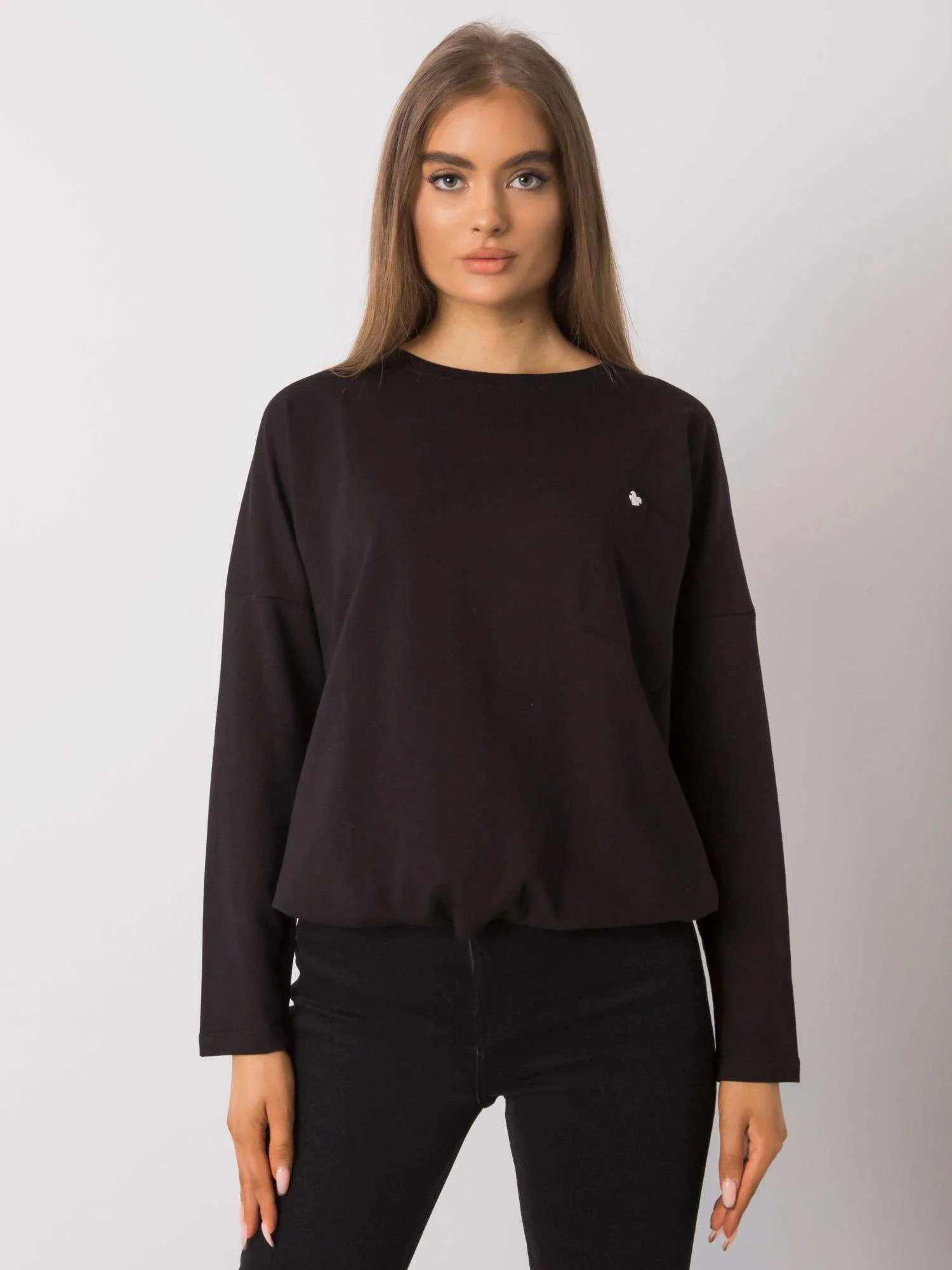 Czarna bawełniana bluzka z długim rękawem.