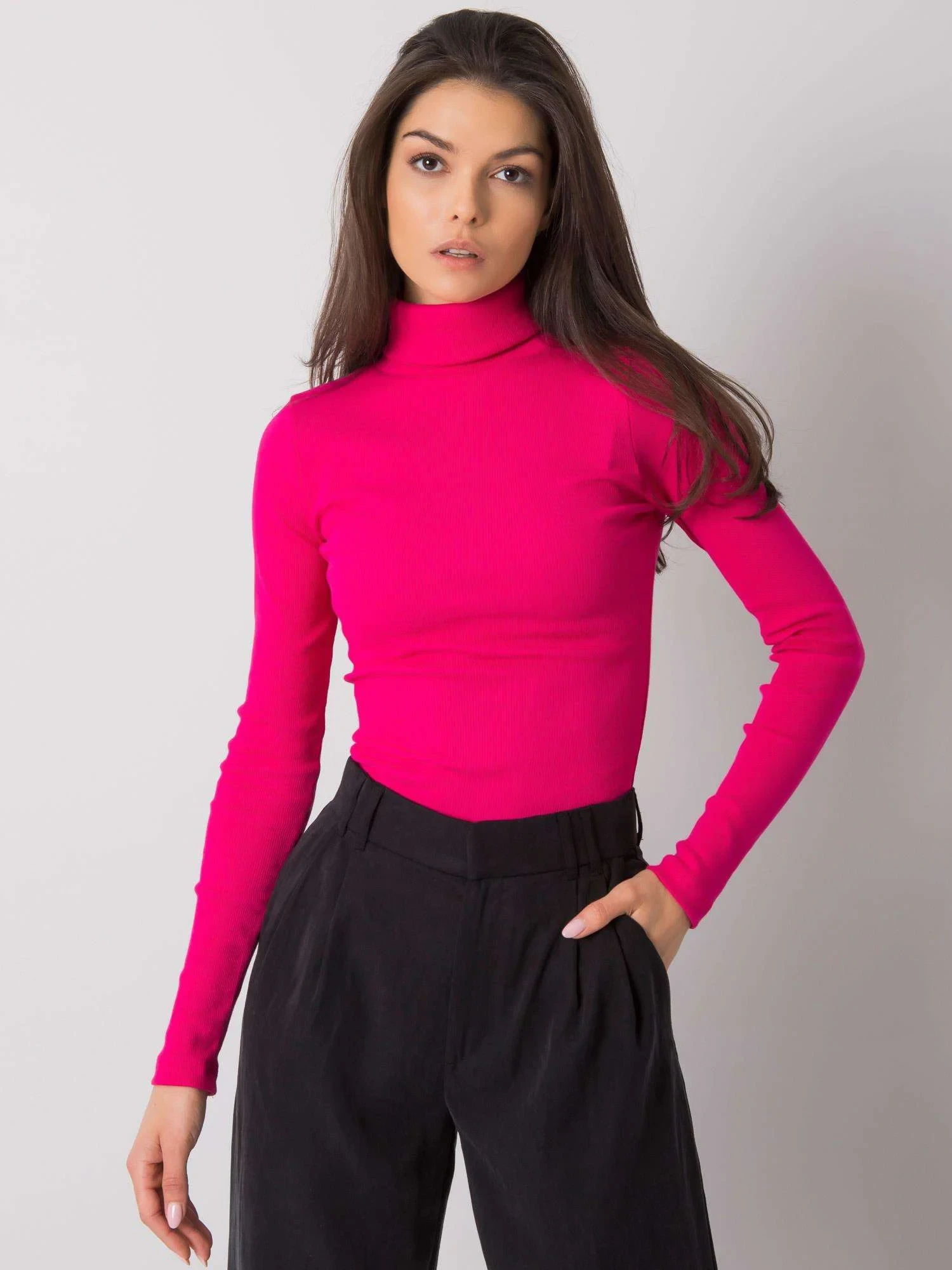 RUE PARIS Fuchsiový žebrovaný rolák pro ženy.