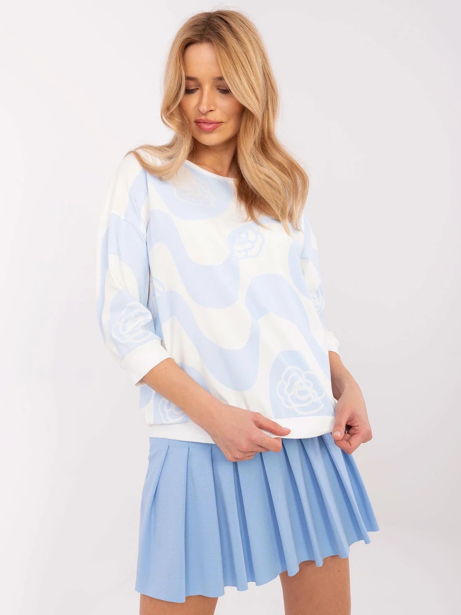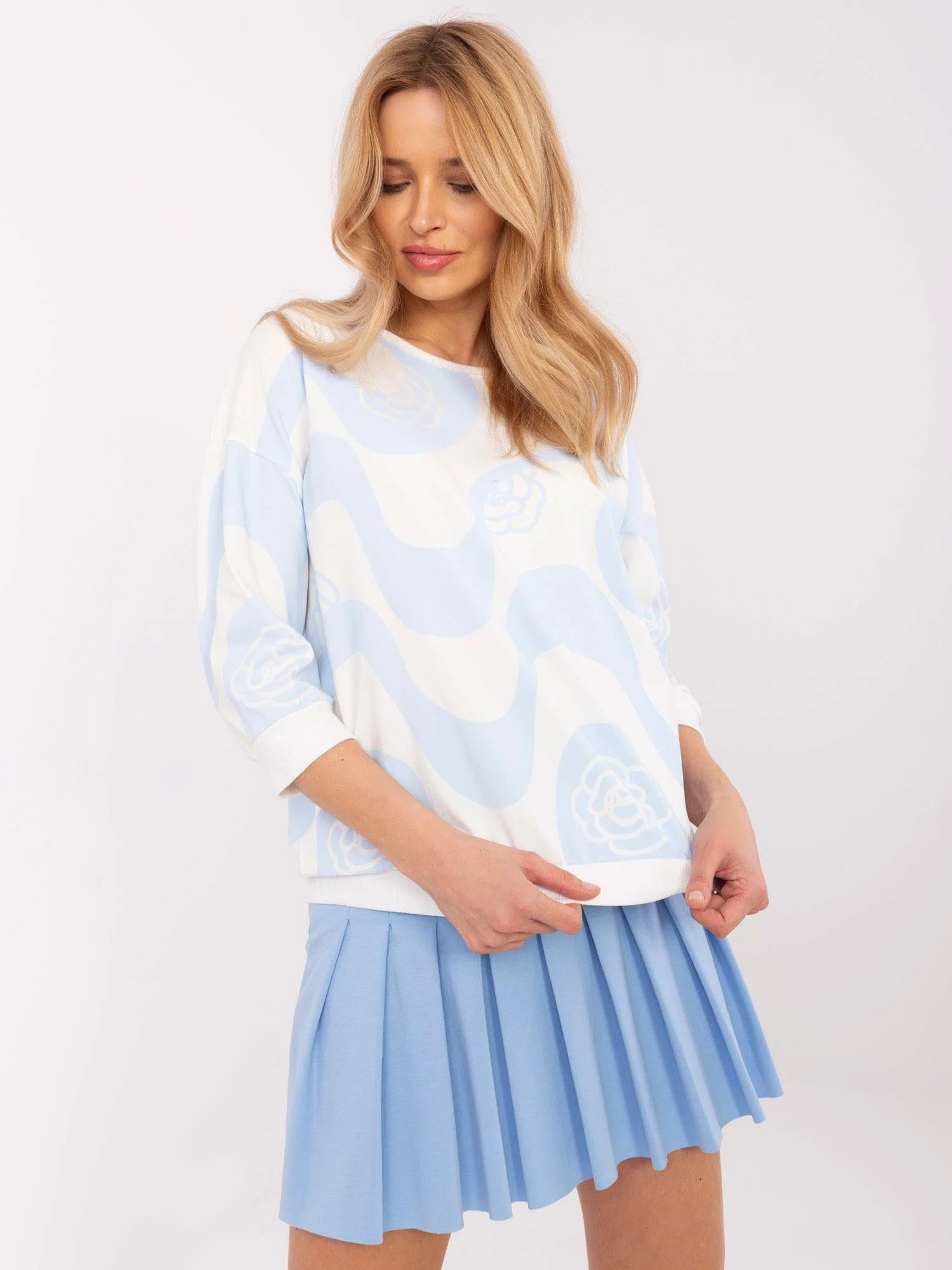 Rozměry halenky v jedné velikosti měřené naplocho: šířka v podpaží - 58 cm, délka rukávu - 33 cm (od švu), celková délka - 61 cm, šířka v bocích - 50 cm (naplocho).
