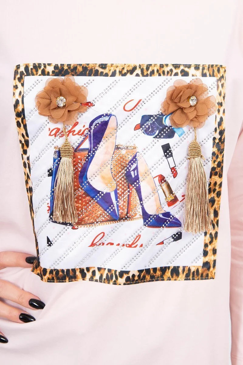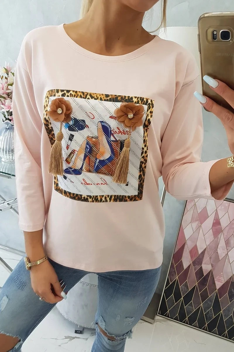 Přidání recenze k Halenka s 3D grafikou a model 18743920 volánky pudrově růžová - K-Fashion
