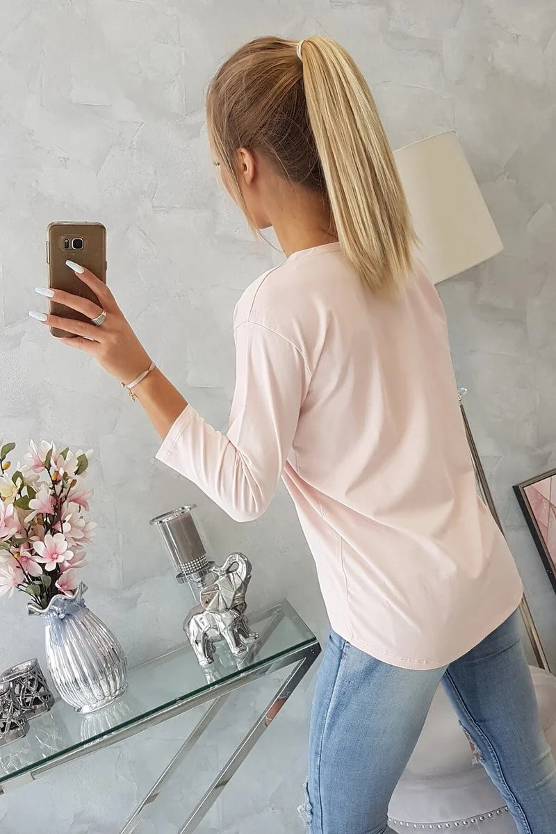 Halenka s 3D grafikou a model 18743920 volánky pudrově růžová - K-Fashion