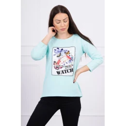 Halenka s 3D grafikou model 18743972 v mátové barvě - K-Fashion